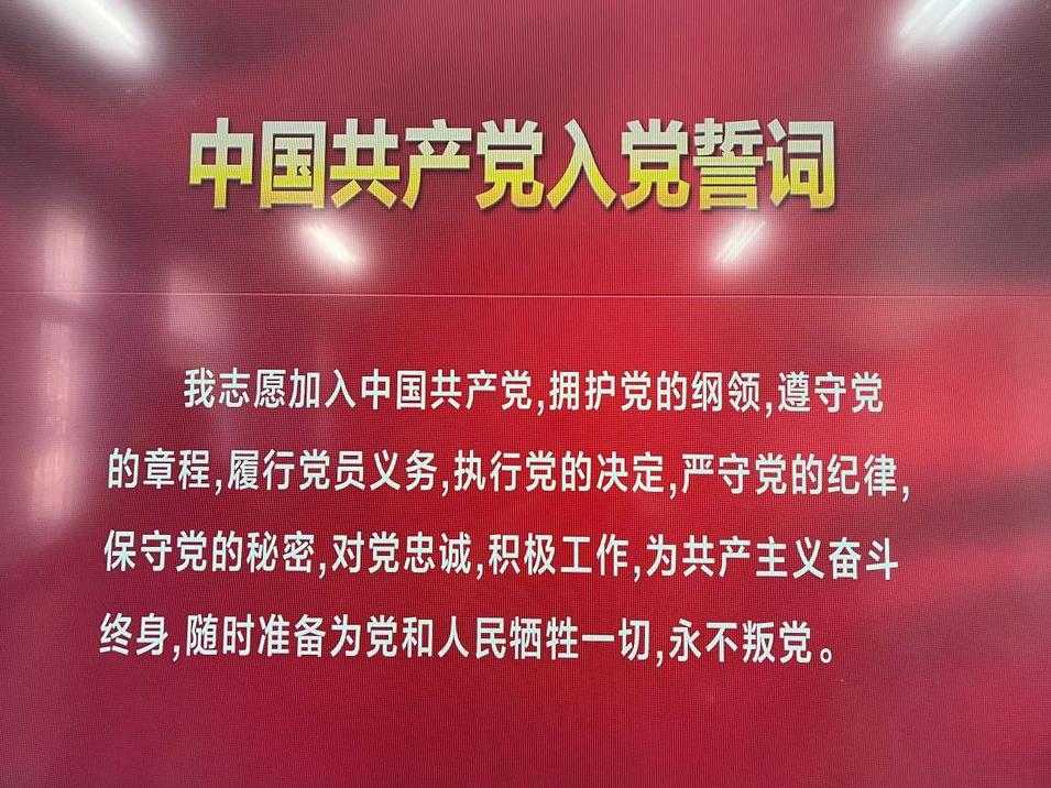 学生第一党支部、第二党支部学生党员,面向党旗庄严肃立,举起右拳,铿锵有力地宣誓:“我志愿加入中国共产党,拥护党的纲领,遵守党的章程,履行党员义务,执行党的决定,严守党的纪律,保守党的秘密,对党忠诚,积极工作,为共产主义奋斗终身,随时准备为党和人民牺牲一切,永不叛党。”一字一句的铿锵誓言,时时刻刻提醒着党对广大党员的要求,广大党员要将其内化于心、汲取力量,以实践为指引,外化于行。