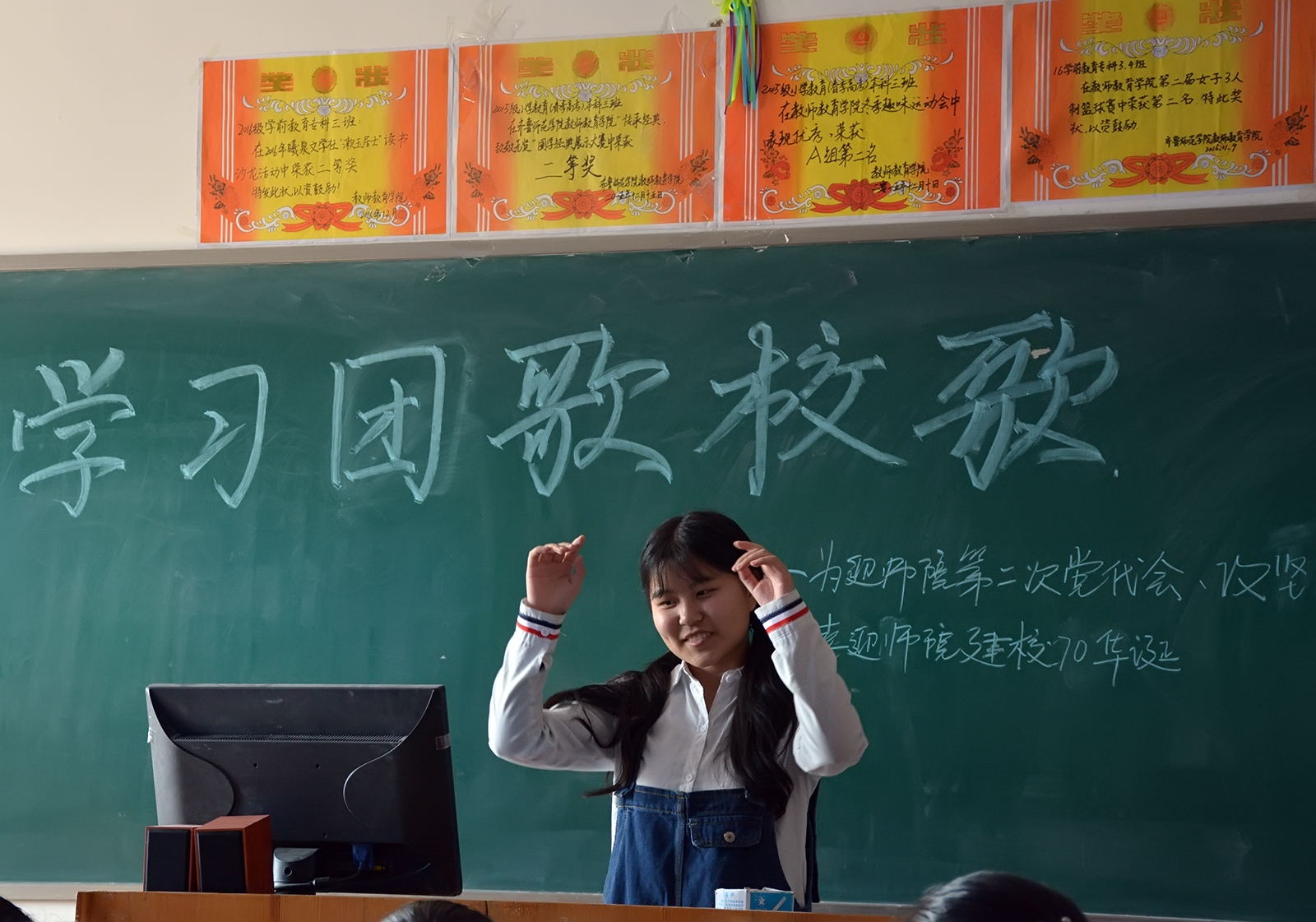 为迎师院第二次党代会、攻坚克难迎评促建、喜迎师院建校70华诞,我院积极响应号召,于2017年3月9日发起学习团歌和校歌活动,2015级、2016级所有班级利用政治学习时间组织相关活动。