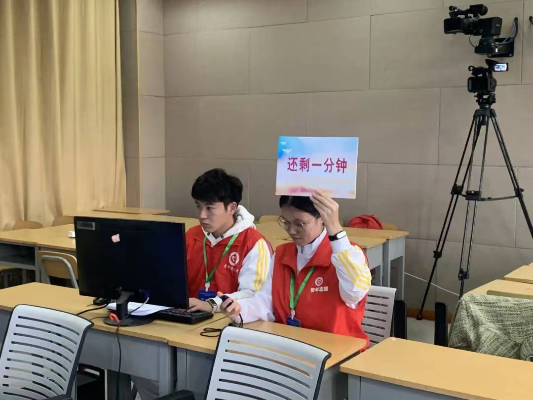 学院志愿者队伍团结一心,分工明确,精密协作。赛前,我校王凯主任、我院栾书记等领导老师召开会议,进行了充分的布置、规划和演练,以确保赛事顺利进行。志愿者们准时到位,积极参与赛会的协调、服务等工作,如现场引导、秩序维护、协助老师们进行场地布置及设备调试等,从场地布置到设备检查,从参赛教师的接待到比赛期间的秩序维护,志愿者们事无巨细,一一落实,为赛事的顺利举行提供有力保障。