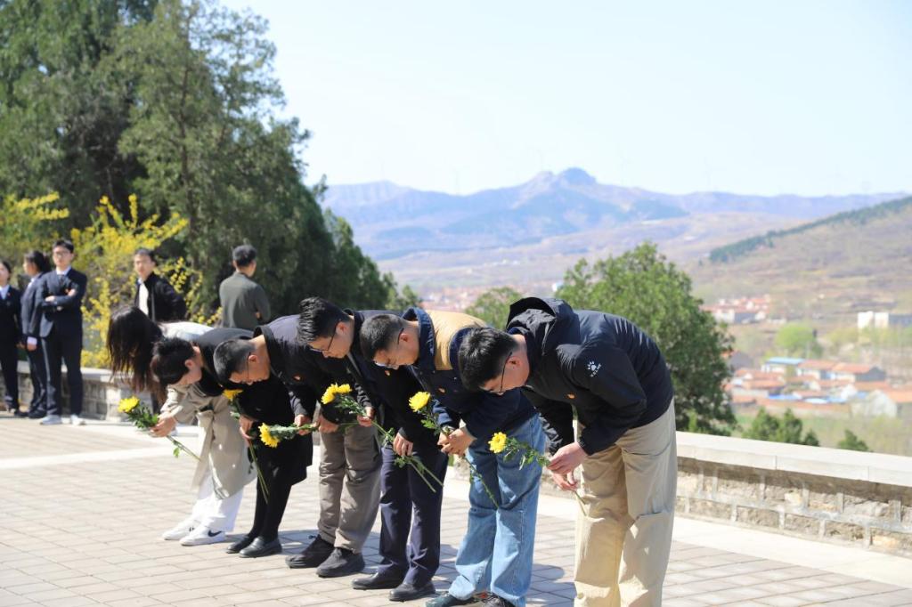 梨花风起正清明,祭奠英烈且当行。为继承革命先烈遗志,弘扬民族精神,增进学生爱党、爱国的情感,4月2日,教师教育学院组织学生党员、团员代表赴章丘区革命烈士陵园开展“清明祭英烈,薪火永相传”主题党日、主题团日活动。学院党委副书记栾毅之、学生第一党支部书记李炜琛、第二党支部书记马芳兵,辅导员袭著高、廖静文、柴通,部分学生党员、入党积极分子以及2024级4个团支部全体团员参与本次活动,以实际行动表达缅怀革命先烈,感悟革命精神。
