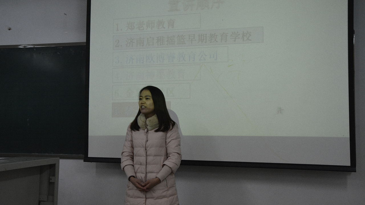 为给我院学生提供更广阔的就业实习平台,便于大家积累经验,提升各方面的能力,特请郑老师教育、济南启稚教育摇篮早期学校、济南欧博睿教育公司等6家教育培训机构为我院13级本科班、14级本科班、15级学前专科班学生做相关就业实习讲解。