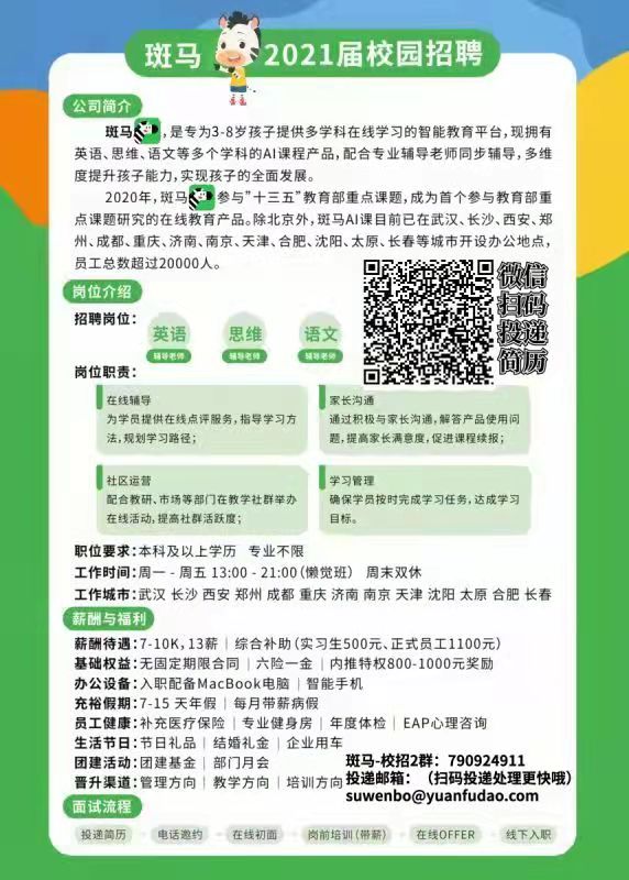 班车接送!假期充足!晋升成长!周末双休!每日零食 !教资福利!