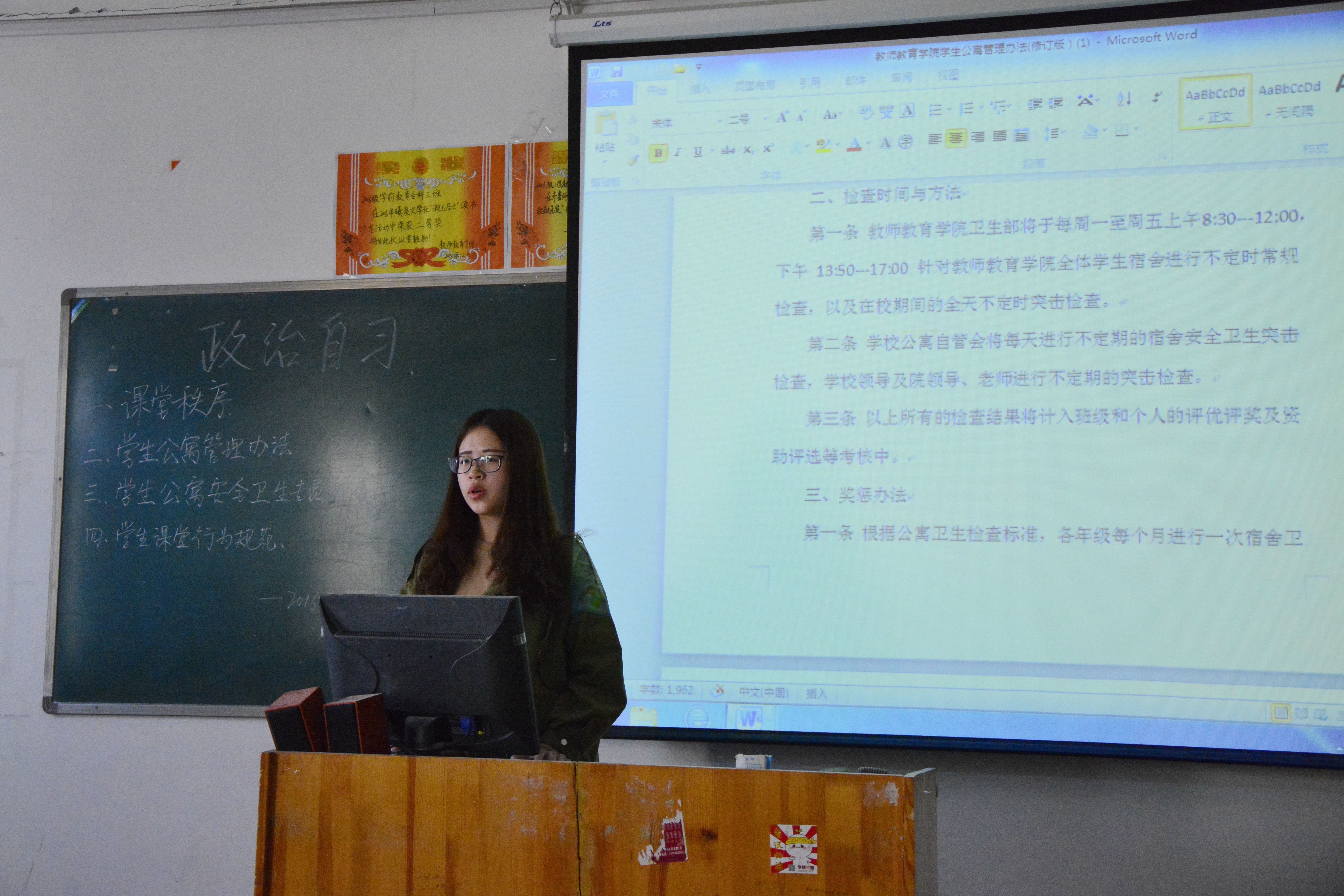 为营造良好的课堂学习环境,同时创建安全、整洁的宿舍环境,教师教育学院党团总支立足学院学生的实际情况,针对现有问题制定了一系列专项检查的通知。学院将根据通知集中开展学生课堂秩序及公寓安全卫生检查工作。