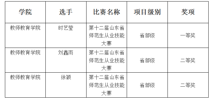 2024年7月,教师教育学院在第十二届山东省师范类高校学生从业技能大赛中取得了辉煌的成绩。教师教育学院学子凭借扎实的专业基础和出色的临场表现,一路过关斩将,最终表现出色,获得省级一等奖1项、二等奖1项、三等奖1项的优异成绩。
