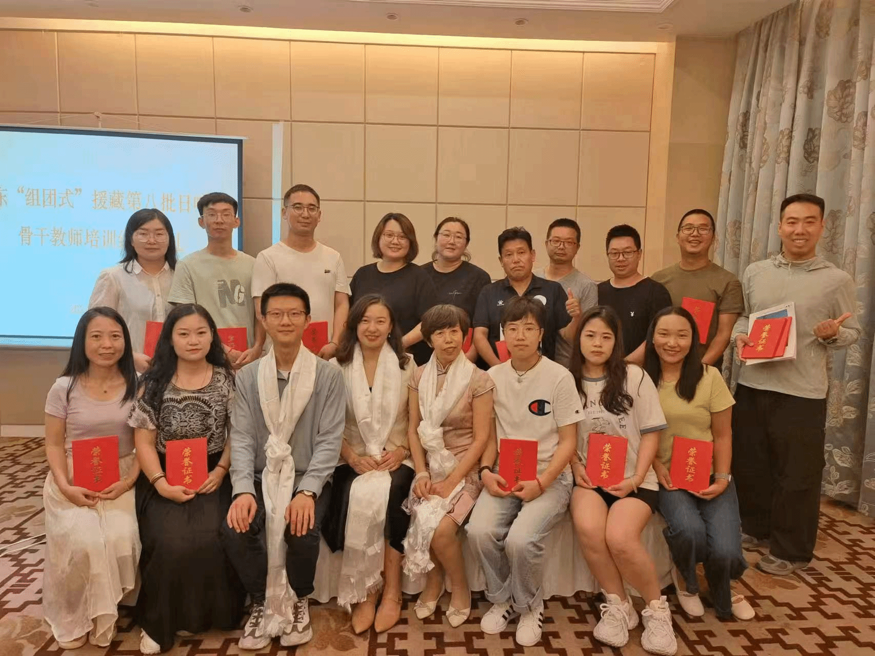现场,首先播放了学员在鲁研修的精彩视频。接着,滕秀芹宣读培训班考核结果和优秀学员名单,分别是丹增赤烈、郭栋和祝桂兰三位老师。