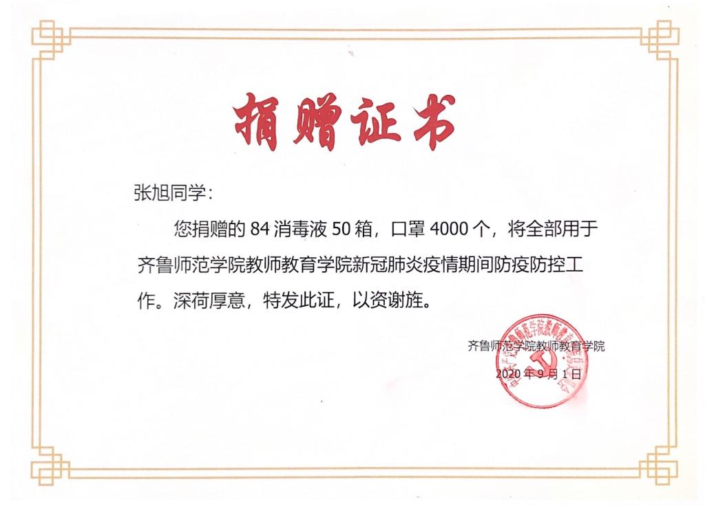 学子有义,情系母校,张旭和刘美君为同学们树立了良好的榜样,赠于情,行于义,爱于心,她们的行为将带动更多的人奉献爱传递爱。学院将严格管理和使用捐赠资金和防疫物资,做到物尽其用、物尽所值。