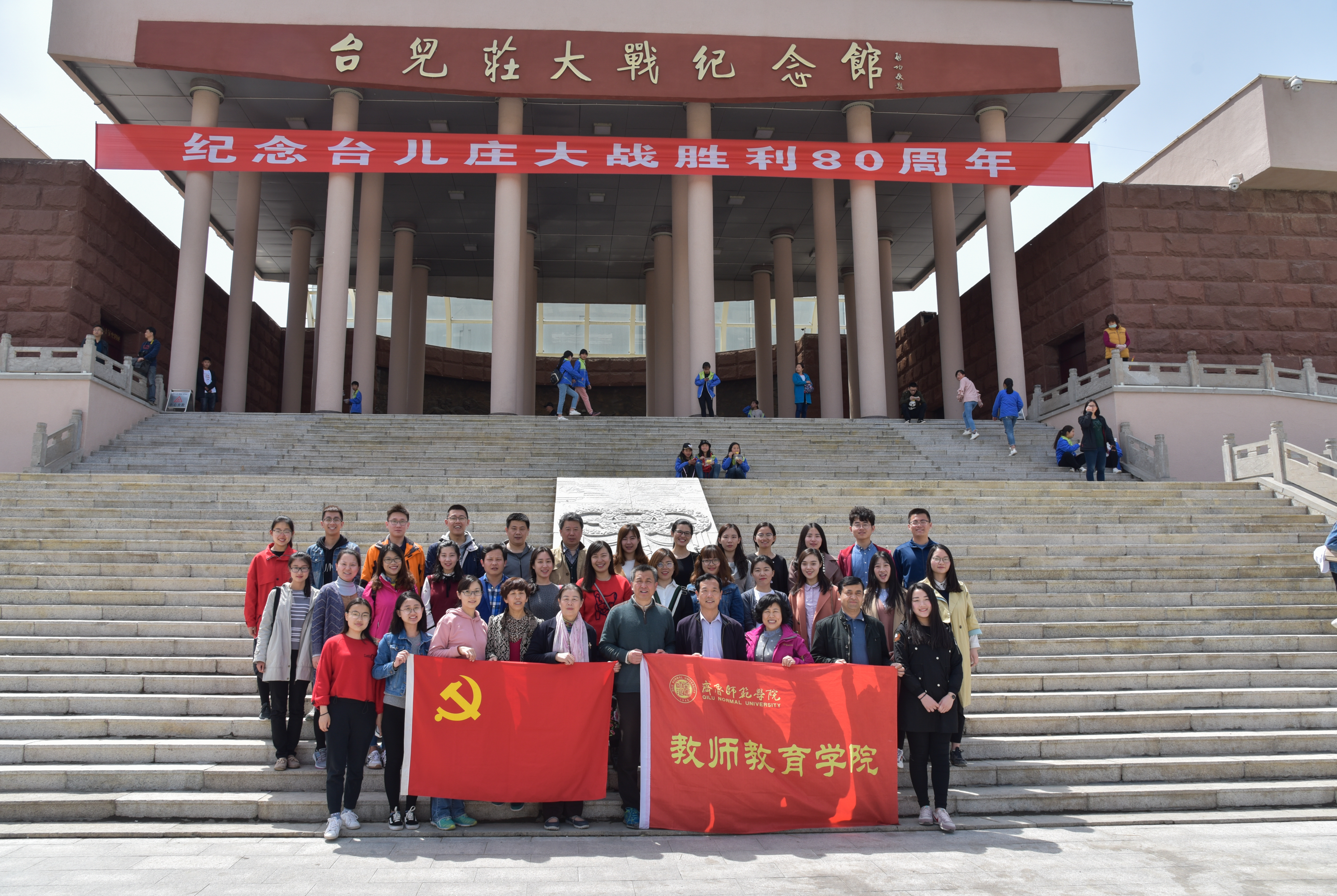历史是文化的载体,历史也是文化的记录和传承。为了更好的感受中国传统文化的魅力,体会爱国主义的民族精神,增强文化自信。2018年4月14日至15日,教师教育学院教工党员23人以及学生14人驱车前往枣庄市,开展为期两天的“红色教育”活动。