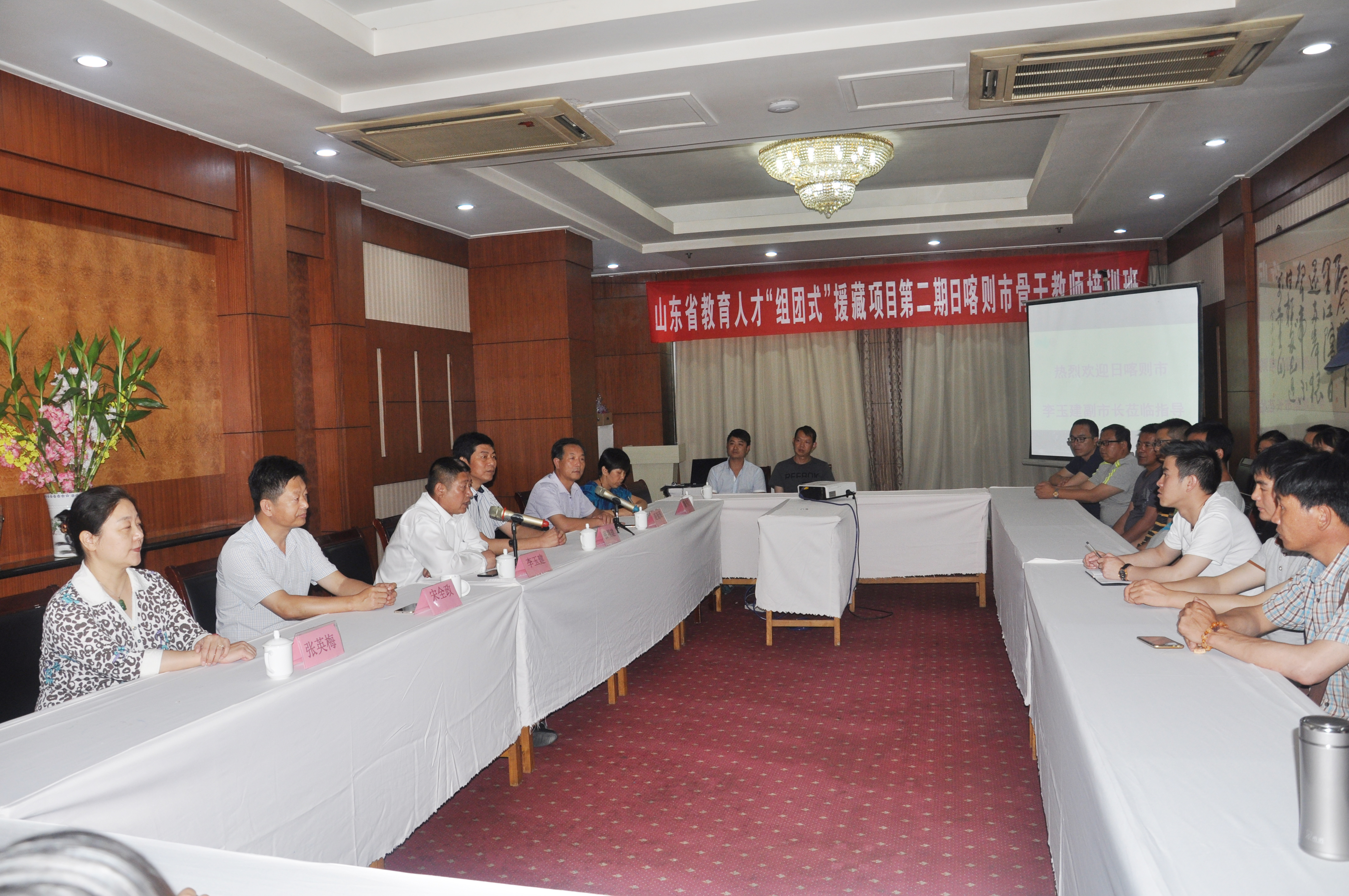 山东“组团式”教育援藏第二期日喀则骨干教师培训为期一年,在山东省教育厅领导下,由齐鲁师范学院和济南、青岛、淄博、烟台、潍坊等对口支援地市共同举办。培训主要围绕实施素质教育和推进基础教育课程改革,针对中小幼教育教学过程中的主要问题和实际需要,坚持以问题为导向,以案例为载体,通过集中培训、跟岗研修、考察学习和总结反思等环节,充分发挥“骨干”培训的示范引领作用,达到每个骨干教师“不仅撑起一门学科,同时带动一批教师成长”的目标,造就一支师德高尚、业务精湛的高素质专业化藏族地区中小幼骨干教师队伍,为促进教育均衡发展贡献力量。
