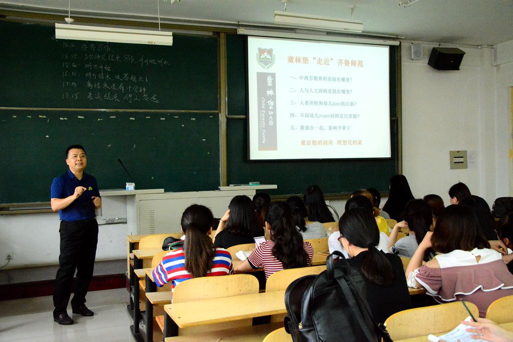 德高为师,身正为范,师德是一个教师的灵魂。能否成为一名好教师,要有“捧着一颗心来,不带半童根草走”的精神。为了培养高素质,高水平的幼儿教师,2017年6月22日,童林堡幼儿园创始人刘合平为我院2014、2015级学前教育专业学生做了“跟谁在一起 影响半辈子”的讲座,我院学生会主席刘冰洁参加了本次讲座。