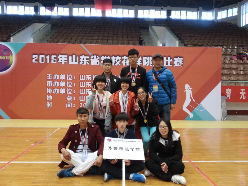 由山东省学校体育协会主办、山东师范大学承办的2015年山东省学校花样跳绳比赛于12月12日在济南落下帷幕,包括山师大、曲师大、山东理工大学在内的20所学校、300余名运动员参赛。我校派出8名队员参赛,其中我院学生迟文敏、迟文捷通过刻苦训练,比赛时超水平发挥,获得多个奖项。迟文敏获得三十秒单摇第二名,三分钟单摇第一名,团体接力赛第一名;迟文捷获得三分钟单摇第三名,团体接力赛第一名。学校代表队获得本次比赛体育道德风尚奖。