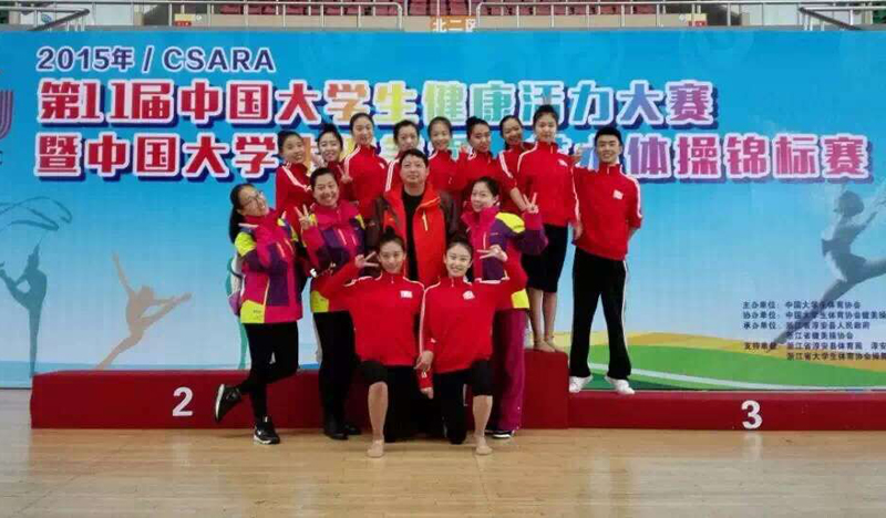 由中国大学生体育协会主办的2015年中国大学生健美操、艺术体操锦标赛于11月7日在千岛湖落下帷幕,包括北大、清华、华师大、山师大在内的86所高校、1184名运动员参赛。我校派出12名队员参赛,在学校领导的支持和关怀下,在全体教练员和运动员的共同努力下,我校代表队参赛成绩取得历史性突破,其中,我院15级学前春季本科学生贾颖获得艺术体操团体总分第四名、艺术集体操B套第六名,14级学前专业孟鑫获得集体第六名,14中澳学前教育专业的吴润曦获得集体第四第六,个人球操第八名。
