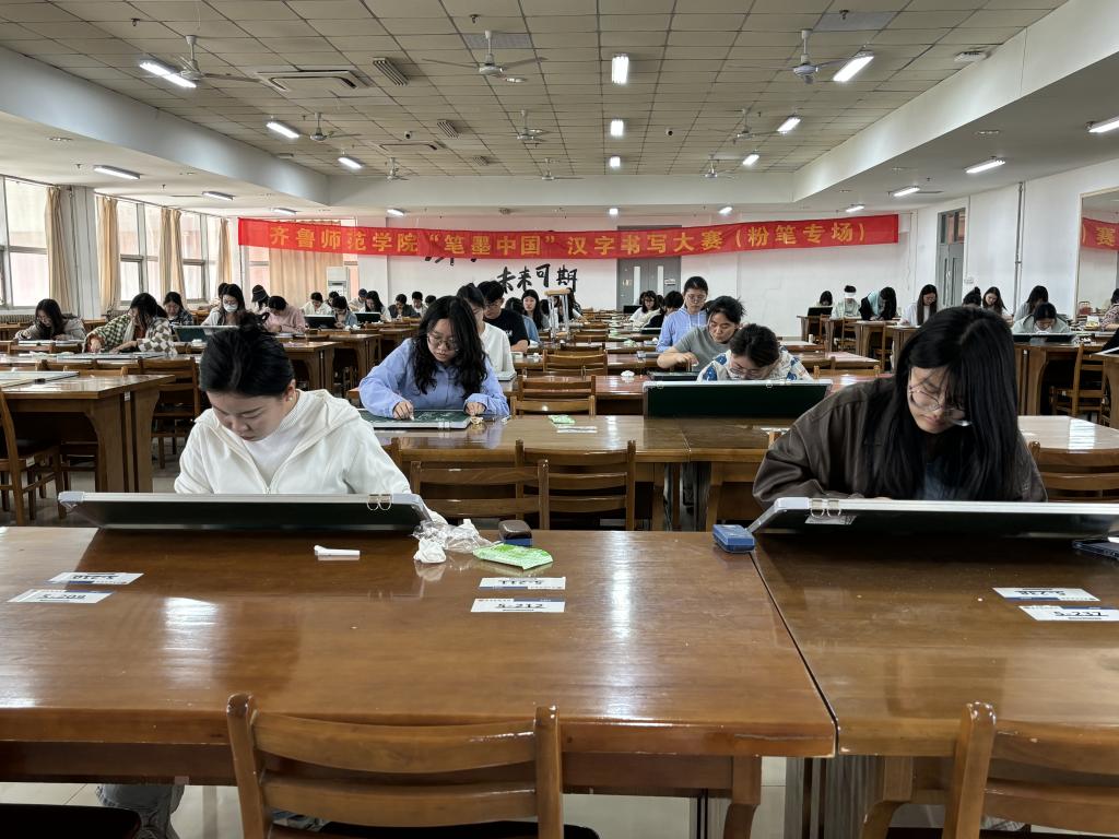本次“笔墨中国”汉字书写大赛校赛分为硬笔组、粉笔组和毛笔组三个比赛组别,经过前期的院赛推荐,三个组别共计400余名同学参与本次校赛的角逐。其中硬笔组和粉笔组设章丘校区一个赛点,毛笔组设章丘和历下校区两个赛点。所有参赛选手均需现场写作,比赛时长共一小时,硬笔组楷法严谨铸规范,粉笔组板书楷韵育匠心,毛笔组诸体纷呈显气象。选手们以笔墨为媒,展现汉字书写的多元魅力,彰显“师院君子”的极致风采。