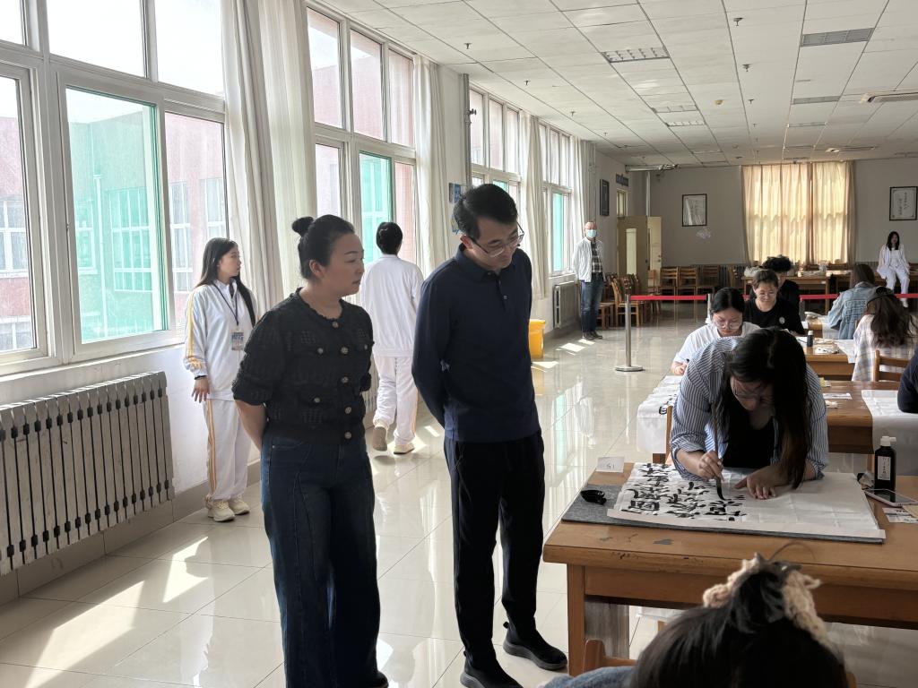 为深入贯彻落实全国教育大会精神,加大国家通用语言文字推广力度,传承发展中华优秀语言文化,提升学生汉字书写技能与审美素养,办好第七届中华经典诵写讲大赛系列比赛。4月24日14点,由学校教务处主办,美术学院和教师教育学院联合承办的齐鲁师范学院特“笔墨中国”汉字书写大赛顺利完赛。学校副校长孙正、学校国家语言文字推广基地办公室主任兼教务处副处长马艳莅临比赛现场观摩指导。