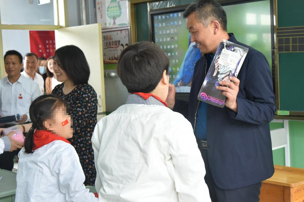 演出开始前,各位领导和老师走进班级,与孩子们亲切互动,并为孩子们送上了笔袋等学习用品、篮球等体育用品,孩子们真诚的对老师们表达着谢谢。领导和志愿者们的到来,不仅丰富了孩子们的生活,更温暖了孩子们的心。