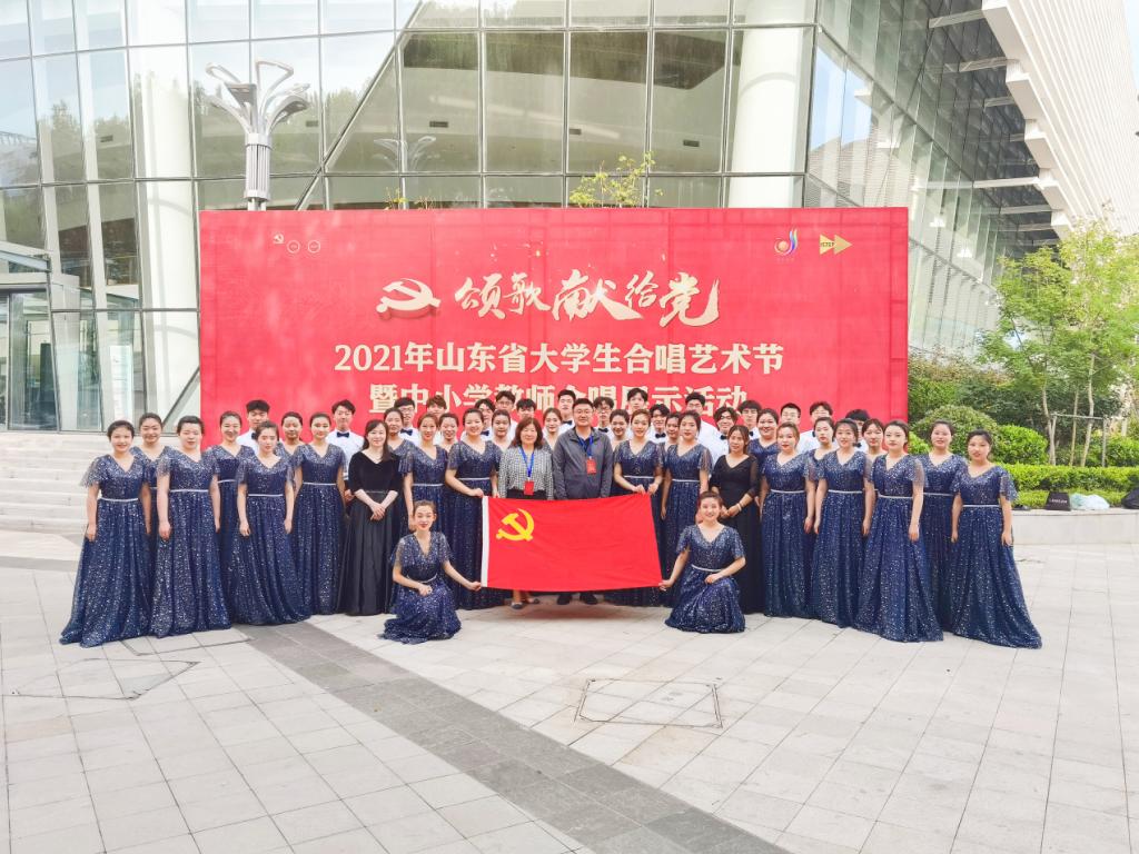 6月15日,由教师教育学院党总支副书记马海涛带队,赴青岛参加“颂歌献给党”2021年山东省大学生合唱艺术节活动,校团委书记孔庆松出席本次活动。登歌合唱团精神饱满,热情洋溢,共表演了《母亲的微笑》和《南泥湾》两首曲目,展现出我校学生朝气蓬勃的精神面貌和爱党爱国的优秀品质。