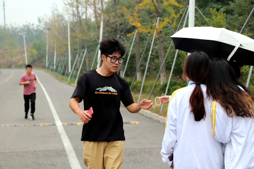 学院团总支副书记李炜琛,辅导员教师为学生提供热身指导,并与同学一同奔跑,感受运动之美。