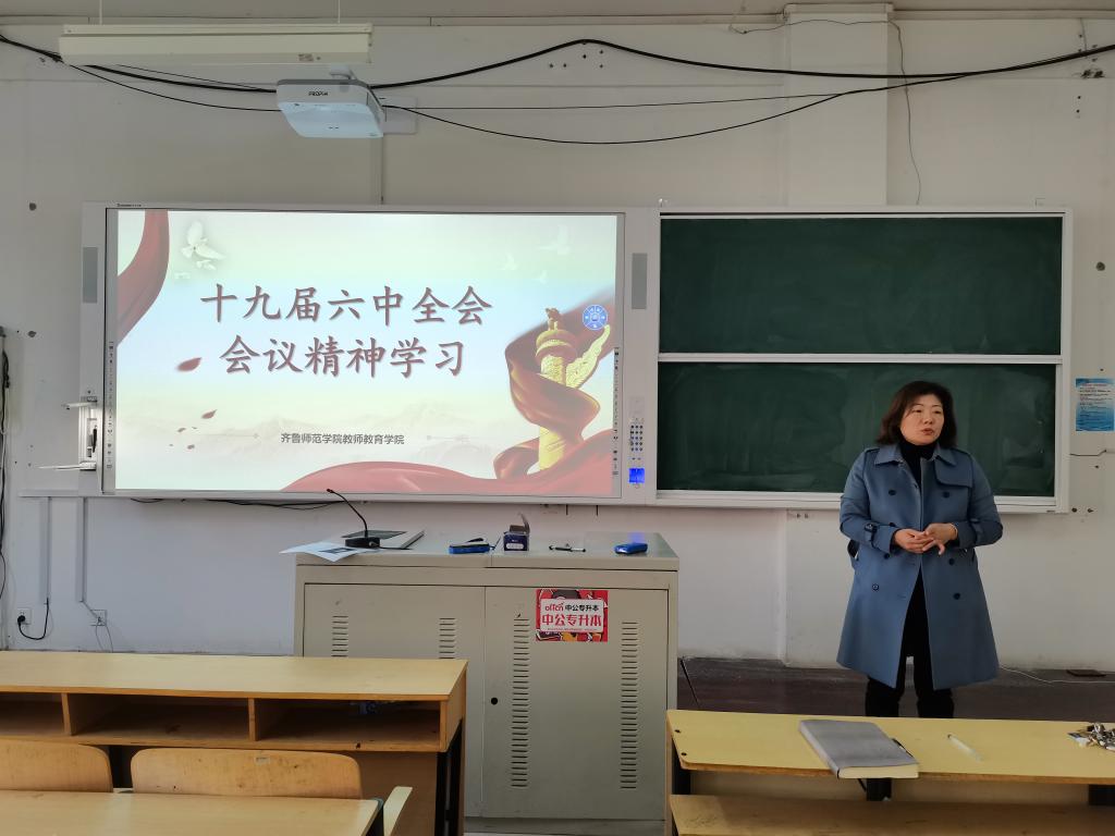 11月25日下午,教师教育学院组织全体教职工在一教A102集体收看《中国共产党第十九届中央委员会第六次全体会议公报》,深刻领会党的十九届六中全会精神。教师教育学院执行院长赵延银,党总支副书记马海涛,副院长魏祥迁及全体教职工参加。