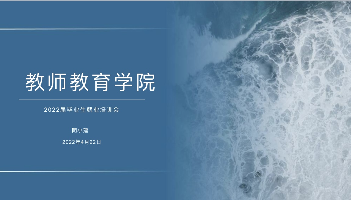 根据学院新学年工作要点,切实为2022届毕业生做好保障工作,动员全体毕业生转变观念积极就业, 4月22日,教师教育学院党委书记阴小建为2022届毕业生召开就业培训会。