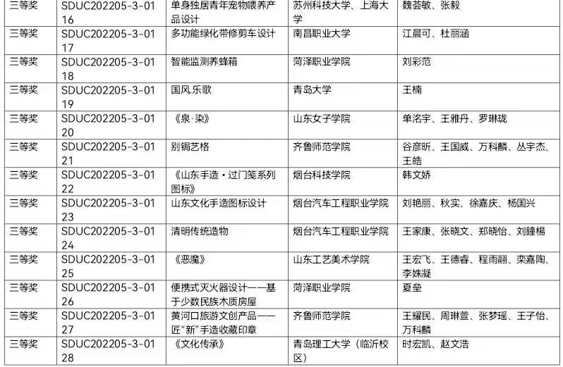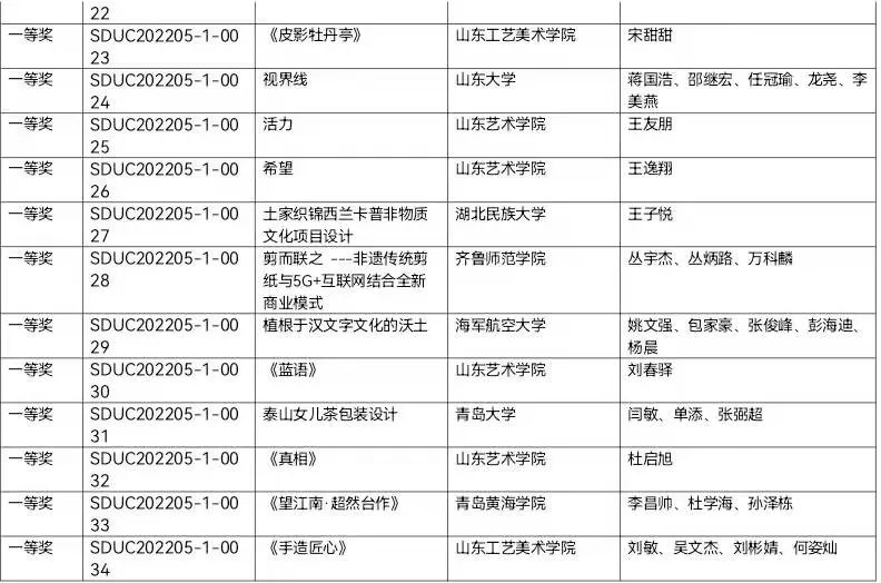 2022年山东省大学生新媒体艺术作品获奖名单如下