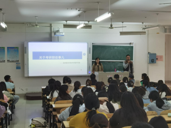 为构建精准化、全过程考研服务体系,推动考研质量、数量的双提升,努力提高人才培养质量,教师教育学院全力以赴打造考研帮扶团队,以考研工作为抓手,营造优良学风,推动学生高质量就业。4月13日下午,学院在二教A307举办考研辅导专题讲座,邀请学院王蕾副教授以《关于考研那些事儿》为主题为考研学生提供精准辅导,答疑解惑。讲座由团总支书记李炜琛主持。