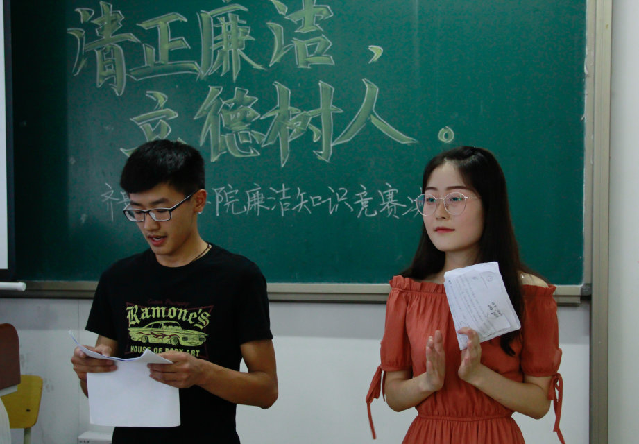 此次知识竞赛活动采取线上线下两种方式同步进行。全校同学积极参与网络答题活动,截止6月8日,5000余名同学进行了线上答题; 6月6日下午,廉洁文化知识竞赛线下活动于章丘校区2号教学楼B331进行,全校各学院由两名学生组成各自代表队进行了各环节的比拼。线下知识竞赛活动融知识性、趣味性、严肃性于一体,设置了选择题、判断题、风险题三种形式的竞赛环节,现场氛围轻松而不乏严肃,常识性而又不乏警示性,整场活动虽是一场比赛,但更像是一堂廉洁知识的课堂。