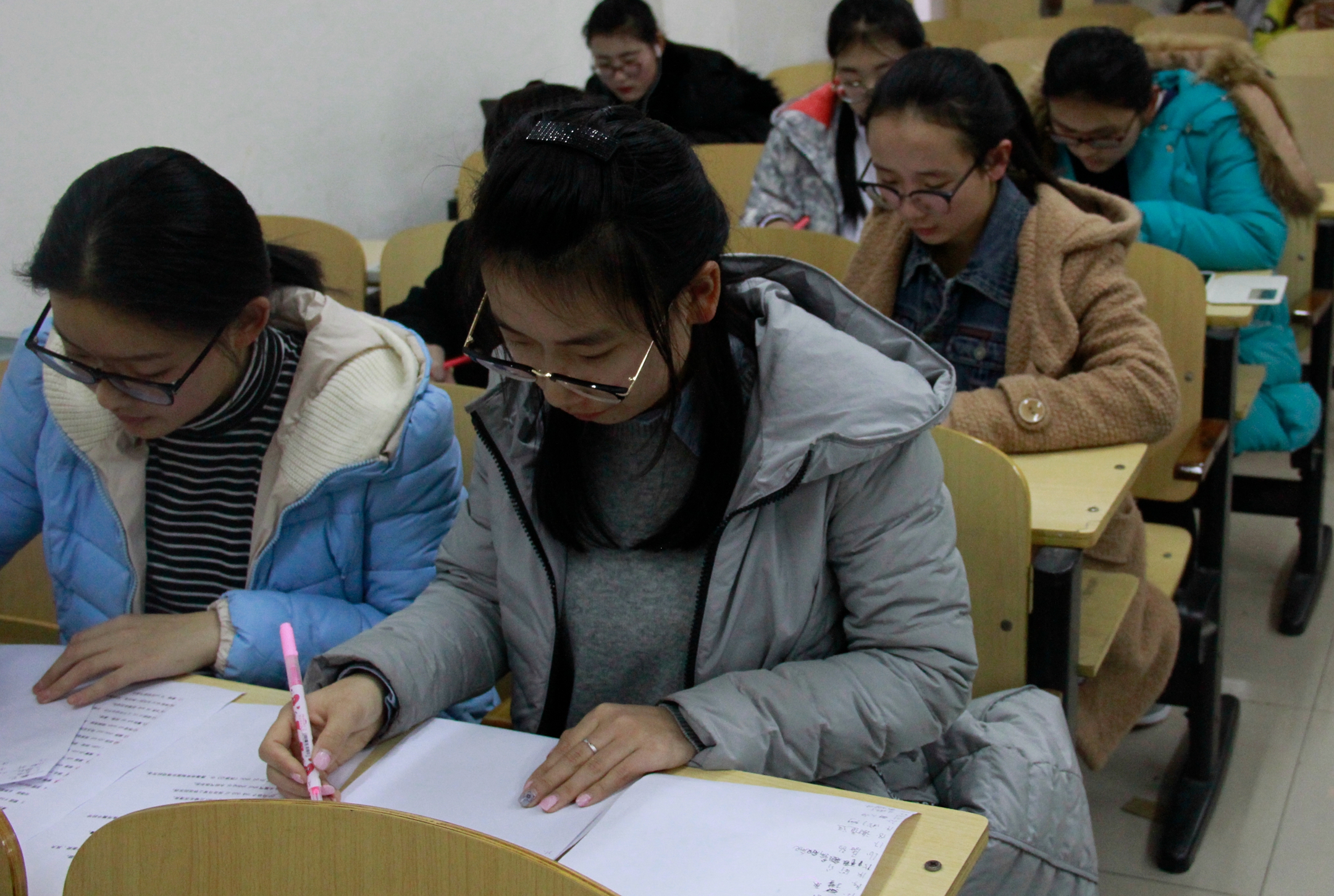 比赛分初赛、复赛和决赛三个阶段,分计时听写、黑板听写等多种形式。每场比赛主持人都向参赛同学们听写数量不等的双音节词和多音节词,评委们则以参赛同学的准确率为晋级标准选出进入下一阶段的优胜者。经过激烈的初赛和复赛,精彩绝伦的决赛于12月21日下午在一教A309如期进行。比赛时,参赛同学们凝神聚气、手脑并用、一笔一划地书写。主持人字正腔圆、抑扬顿挫的朗读,也为大赛增添了几分靓丽的色彩。希望各位参赛同学在此次大赛之后,能继续在今后的生活中发扬中华优秀文化,使汉字在社会主义新时代焕发出耀眼的光彩。