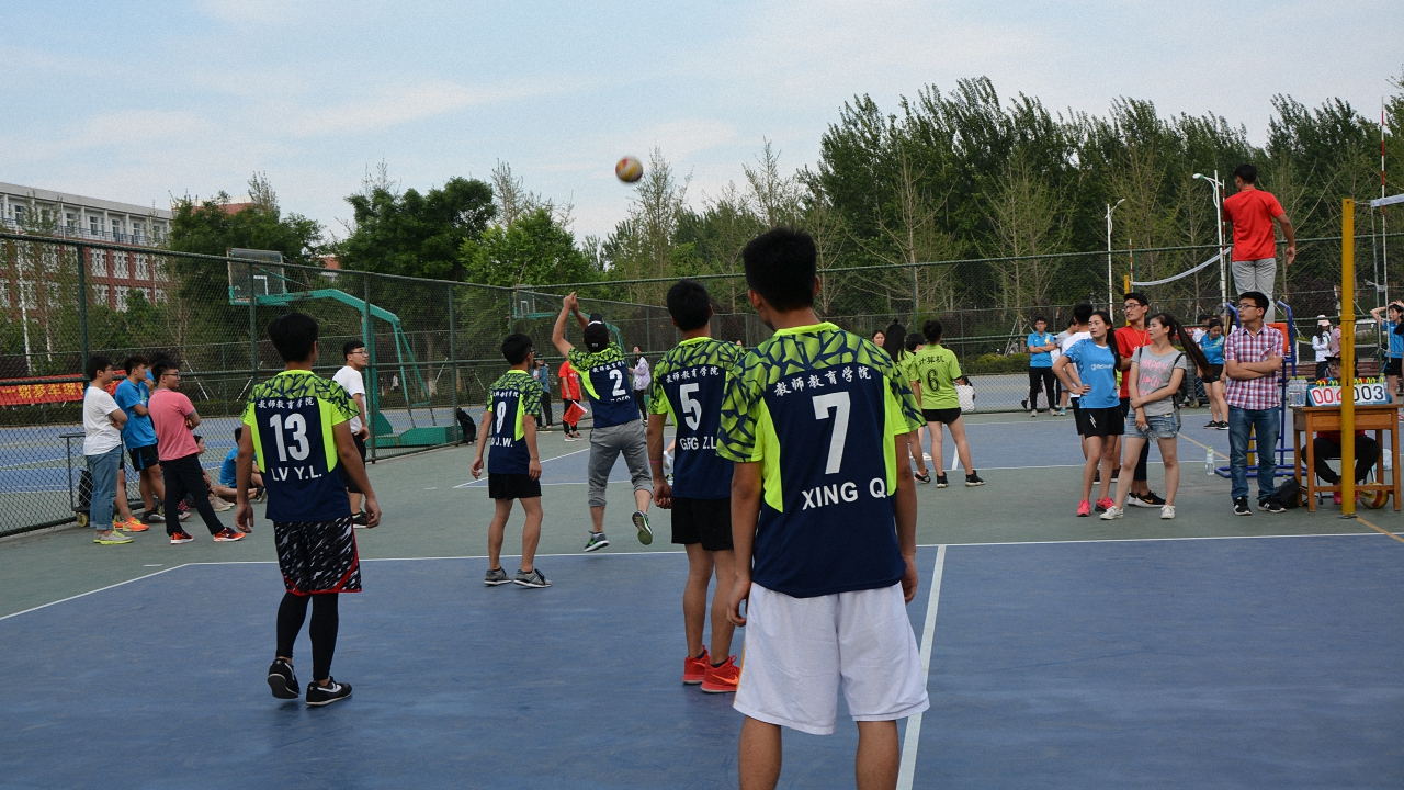 为展现我校学生积极向上的精神面貌,培养团队合作积极进取的精神,2017年5月19日下午4点半,齐鲁师范学院排球赛在四号排球场举行,我院与文学院展开激烈角逐。