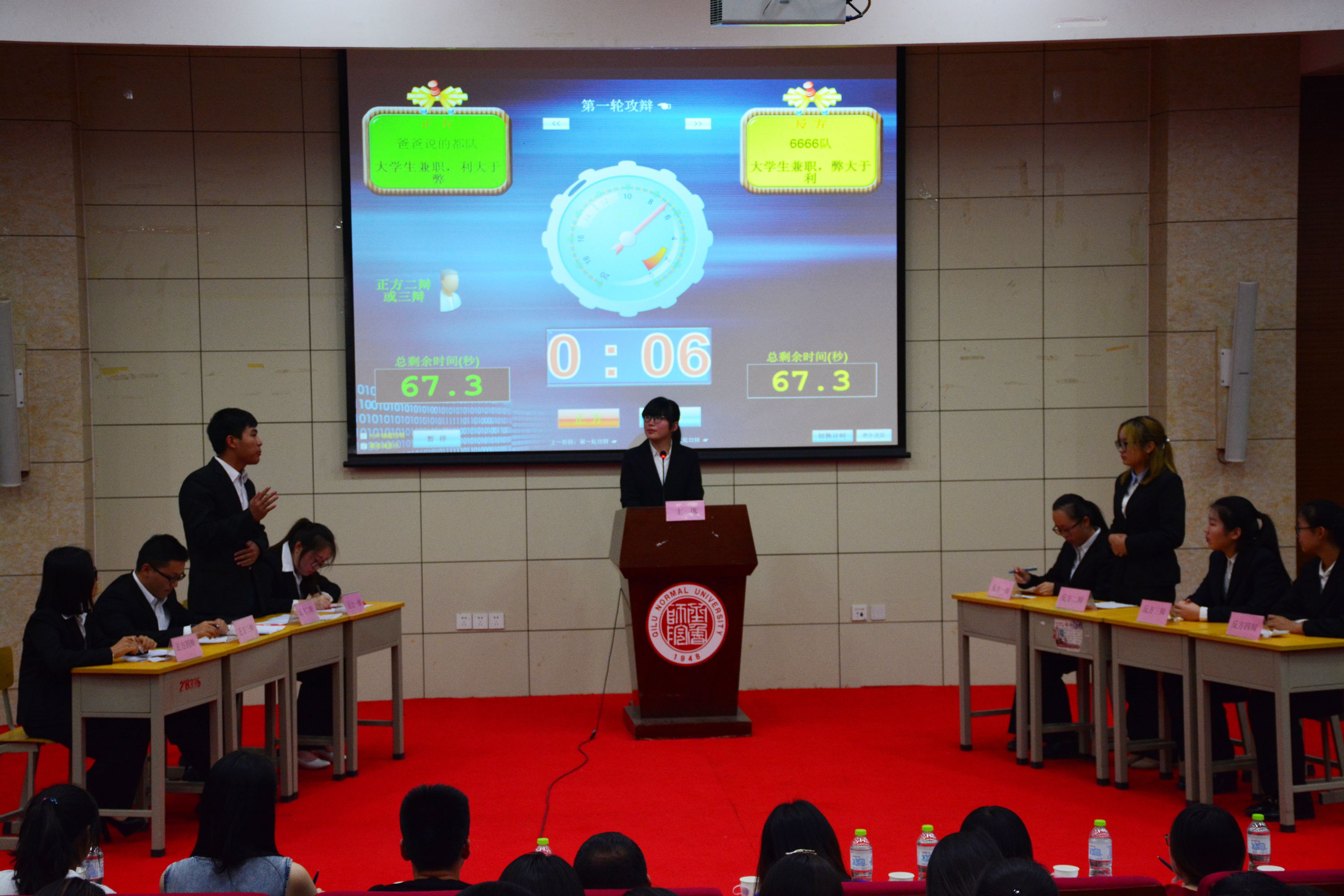 主持人在做过简单介绍后,济南大学医科院医学与生命科学学院两支队伍首先进行了辩论赛比赛,双方以“大学生兼职的利与弊”为辩题展开辩论,比赛中反方三辩表现出色,双方针锋相对,步步紧逼,攻辩小结更是完美收官。济南大学医科院医学与生命科学学院学生会指导老师刘昕老师对上半场比赛进行点评。第二场比赛同样激烈,我院两支队伍就“竞争与合作谁更重要”展开辩论,双方提出各自的观点,流利的语言,严谨的思路,以及恰到好处的肢体语言,让人眼前一亮。引起全场掌声雷动,点燃了辩论赛紧张的气氛。