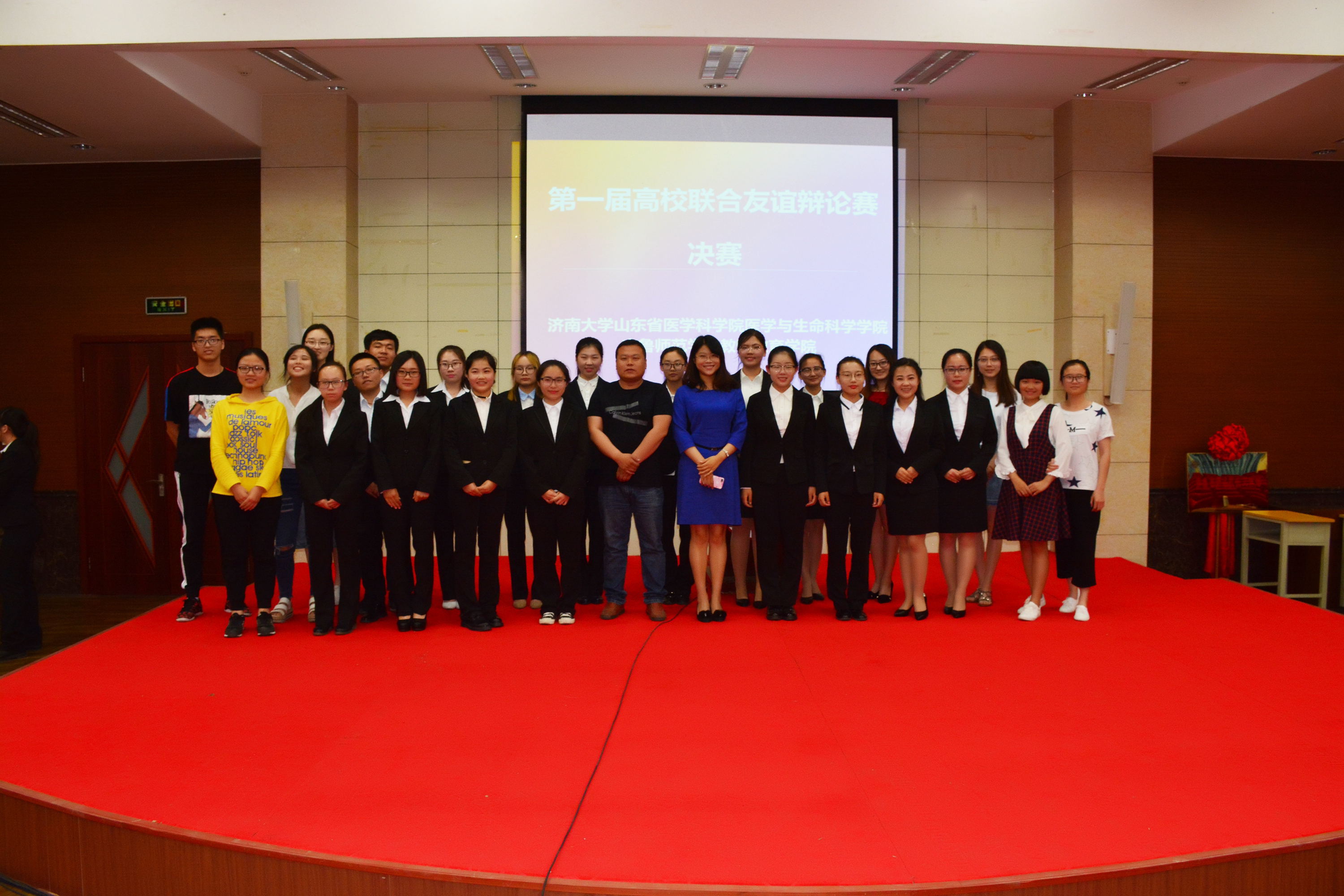 在经过、激烈刺激的辩论赛半决赛后,我院两支队伍以微弱优势战胜了济南大学医科院医学与生命科学学院的队伍,四支队伍在经过一段时间休整后,于2017年5月15日晚在我校图书馆学术报告厅进行了总决赛。济南大学医科院医学与生命科学学院学生会指导老师刘昕,我院辅导员王戈弋老师,医科院学生会主席王双庆,我院学生会主席刘冰洁,医科院副主席于倩、丁倩倩、李炫玉,我院学生会副主席周佳慧、马阳、李艳华担任本场辩论赛的评委。