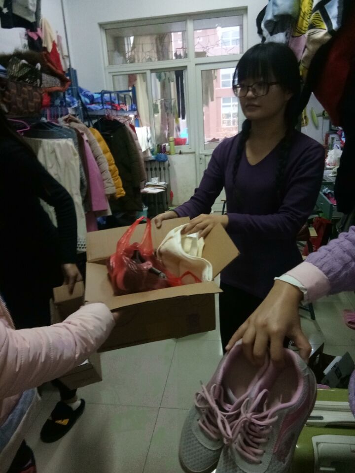 下午15:40,爱心宿舍活动正式开始。爱心社成员按照宿舍楼分工协作,同学们都积极参加,纷纷捐出自己的闲置衣物、书籍等。干净整洁的鞋子虽然穿过,但仍然能为孩子们带去温暖;一摞摞叠放整齐的衣服,饱含的是她们对孩子们深情的关爱;一本本书籍撑起的是远方孩子们的美好未来。下午五点,各部成员到达指定地点整理所收集的爱心物品。
