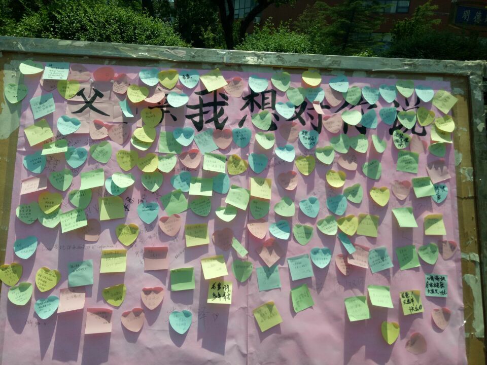 2016年6月17日,在父亲节即将到来之际,教师教育学院曦泉文学社举办以“父亲,我想对你说”父亲节主题活动。活动包括想对父亲说的话和主题征文两部分。同学们纷纷在便利贴上写下对父亲的祝福,并在感恩父亲的条幅上签字,将感恩时刻记在心中。更有不少的同学将自己和父亲的故事写成文章,踊跃投稿。活动期间,大家热情高涨,气氛活跃。那些色彩斑斓的便利贴,那些简单却又真诚的祝福,如一条小溪潺潺流过每一个人的心房,送去清凉和感动。征文经过审阅后将会把获奖结果公示于教学楼及一餐路口海报,同时会在微博平台上推送。