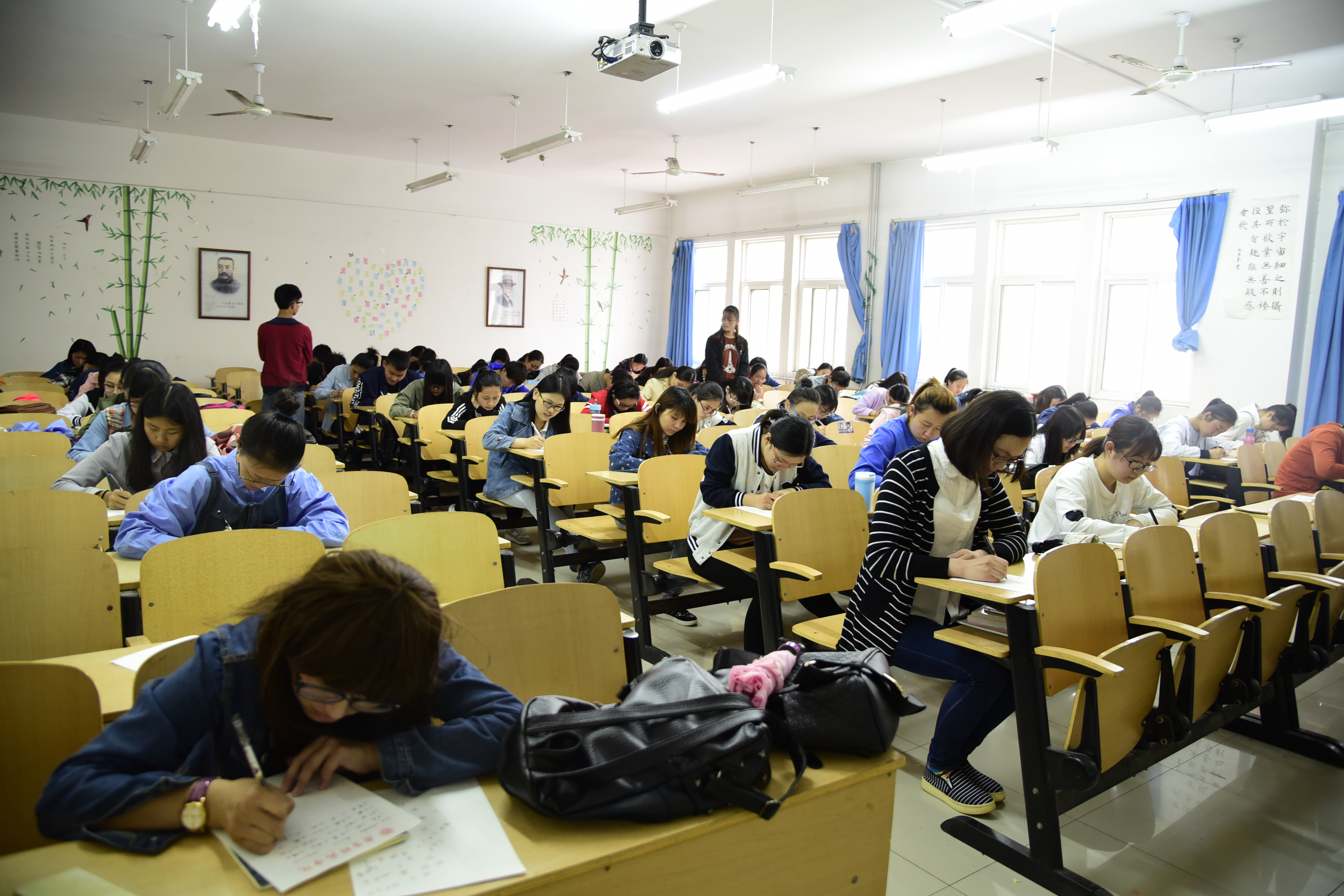 为了弘扬中华汉字文化,增强当代大学生规范、正确书写汉字的意识,培养巩固同学们的听写能力,我院于2016年5月9日下午三点半在一教b312和a306举行了“笔随心动,字扬国风”汉字听写大赛初赛。本次比赛由我院学生会学习部部长刘冰洁与副部长李婉婉、刘雪莹主持,超过110名同学报名参加。