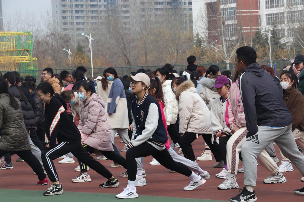 在正式开跑前,为防止大家在跑步过程中拉伤,体育部负责人员特地在操场主席台前带领大家一起进行了准备活动。即将踏上跑道的同学们舒活着筋骨,为环校跑养精蓄锐,做足准备。