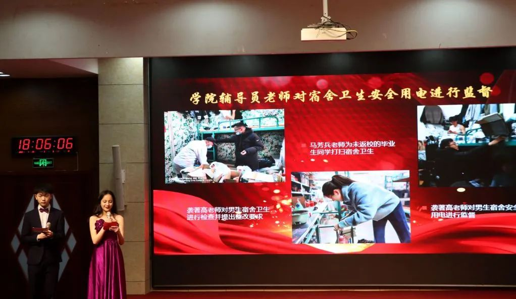 大会开始后,首先展示了本次活动的活动过程和成果。在本次活动中,我院老师与学生会做出了巨大贡献,对同学们的宿舍整改进行了监督与指导。经过老师和同学们的努力,同学们的宿舍环境有了巨大改观,本次活动取得了圆满成功。