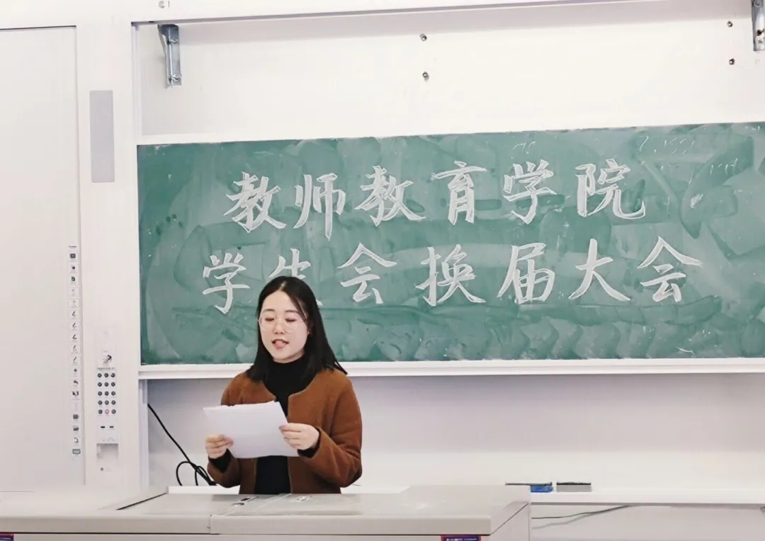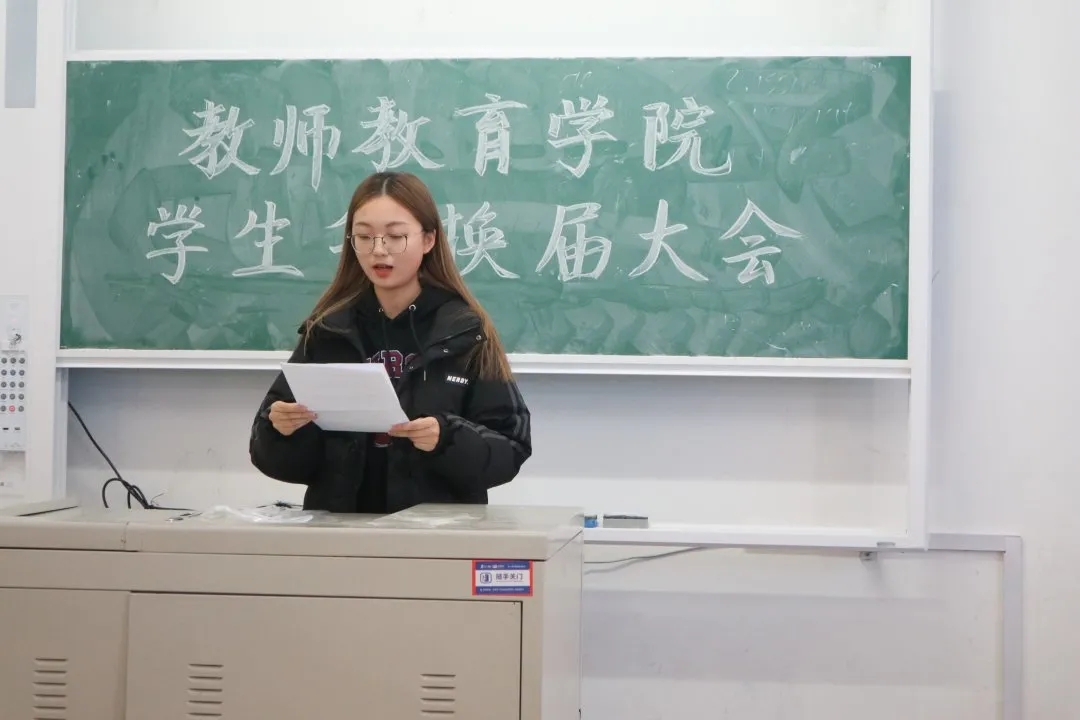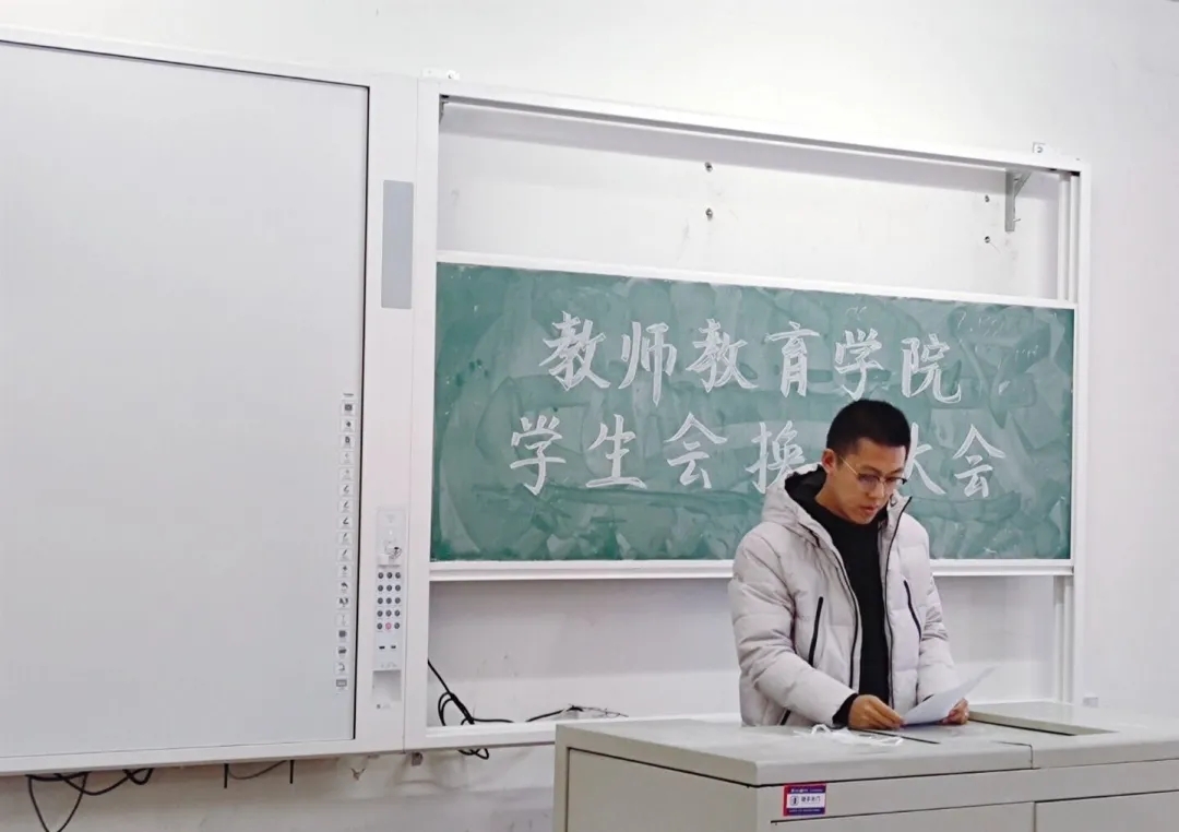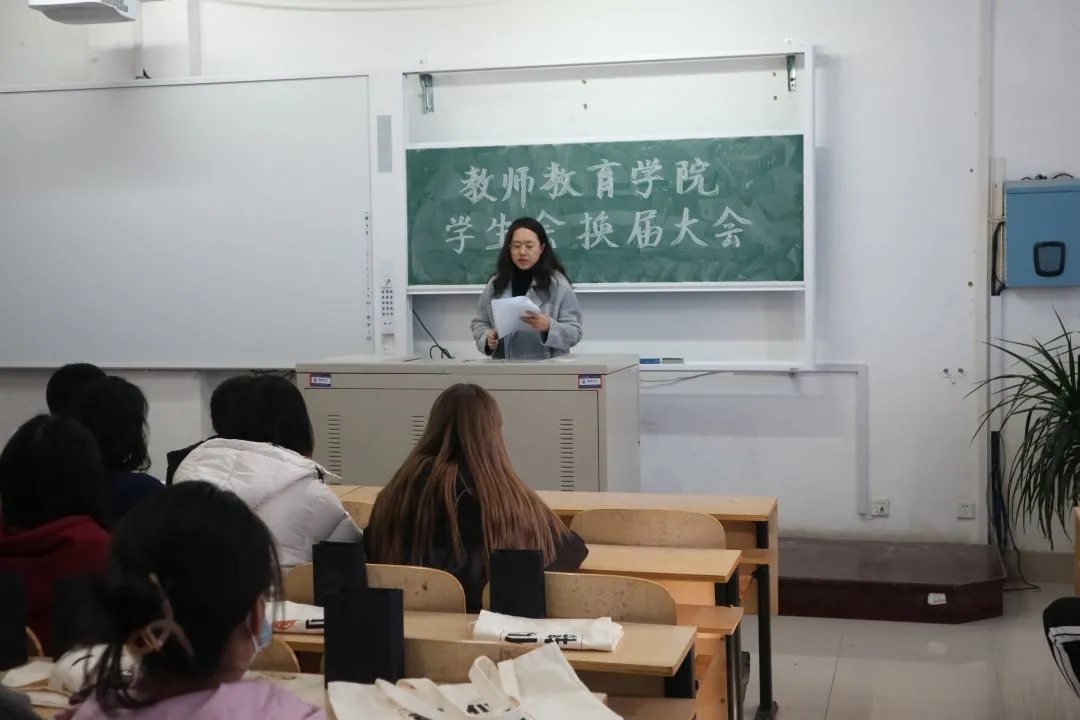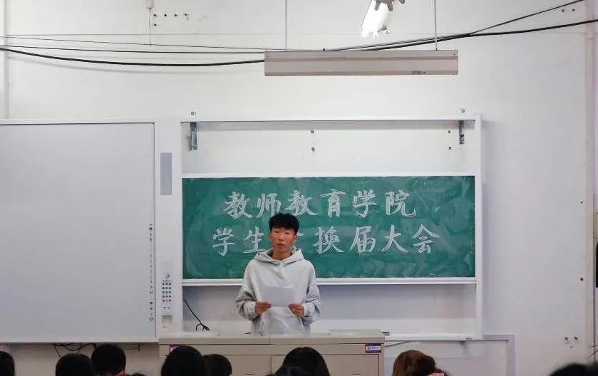 11月11日中午12:10,我院于一教A111召开教师教育学院学生会换届大会。团总支副书记李炜琛,辅导员老师田蕾,袭著高,李文出席本次大会,20届学生会主要学生干部和21届学生会全体成员参加本次大会。会议由20届学生会主席团成员别大龙主持。