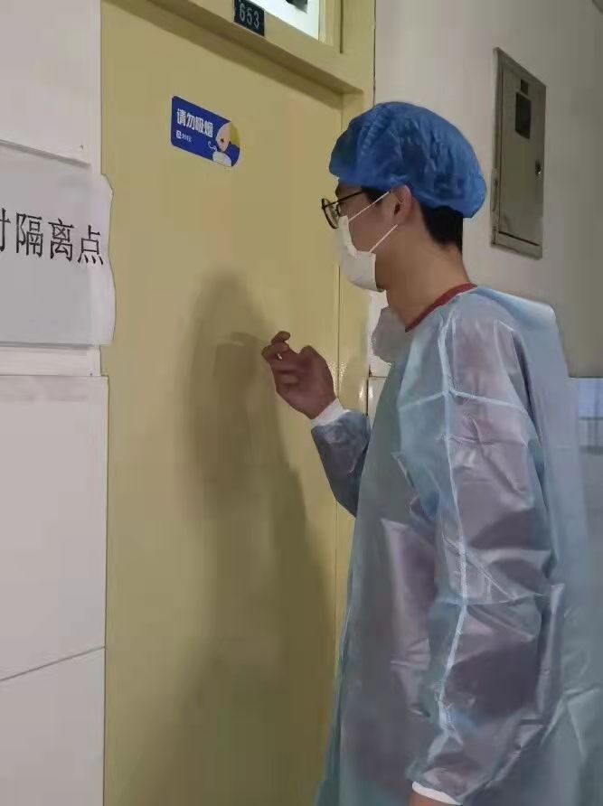 “我其实也很怕。”一名志愿者这么说到,“但人总会有需要帮助的时候,我愿意做一名志愿者,让被隔离的同学能够感受到温暖——我们与你同在。”