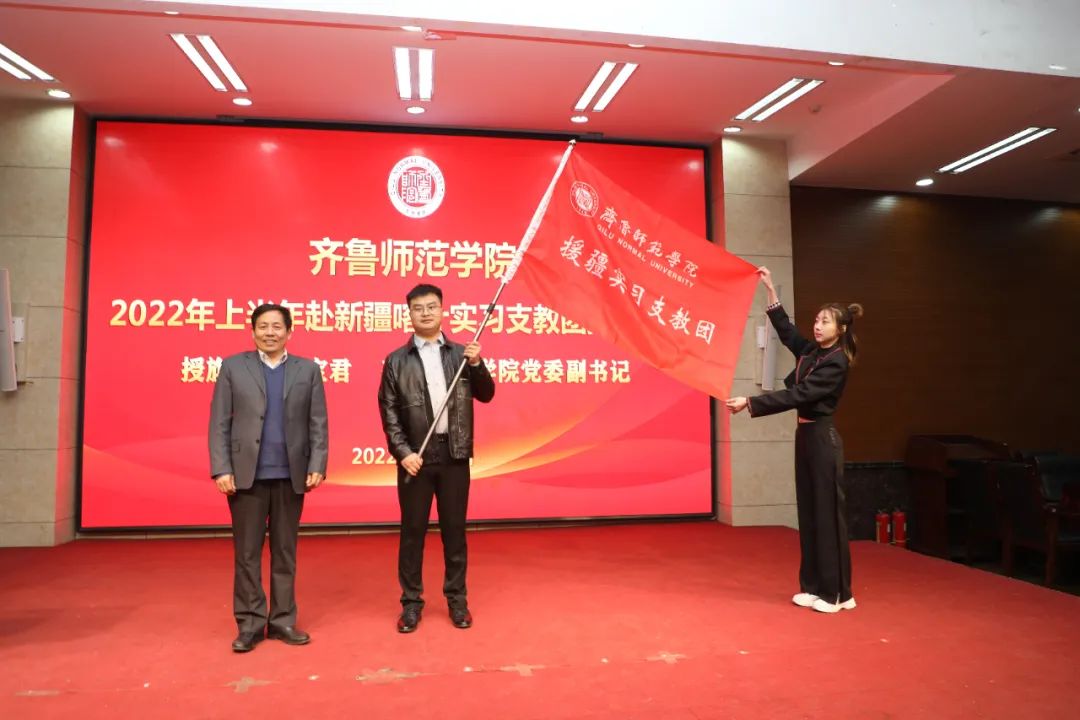 3月6日上午,齐鲁师范学院2022年上半年赴新疆喀什地区实习支教团出征仪式在图书馆学术报告厅隆重举行。学校党委副书记刘宝君出席仪式并讲话,党办校办、党委宣传部、学生工作部、团委、教务处负责人以及相关二级学院院长、党总支书记,支教团全体师生参加。仪式由教务处处长孙洪兆主持。