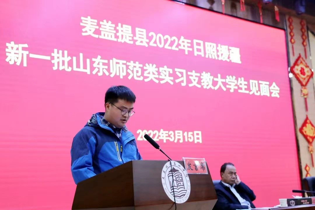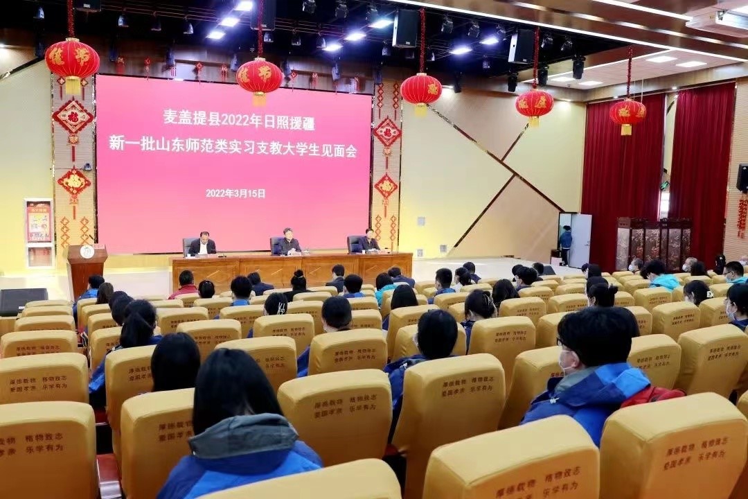 3月15日上午,齐鲁师范学院援疆实习支教团全体师生参加会议,此次会议也标志着我校选派的59名实习支教大学生肩负使命,正式走上岗位。