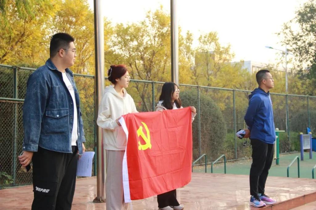 教师教育学院党委积极创新学习方式、不断丰富学习内容,“走出去”将主题党日活动扩展到革命遗址、历史展馆和红色教育基地等地,让理论学习与实践实景学习充分结合,使师生党员在身临其境中坚定理想信念,牢记初心使命。10月16日清晨,学院教师、学生党支部在章丘校区体育场参加了学校国旗护卫队升旗仪式,并在国旗下开展了“凝聚奋进力量、激励担当作为”主题党日活动。学生第一党支部书记李炜琛、辅导员马芳兵、高航与师生党员等80余人参加了本次活动。