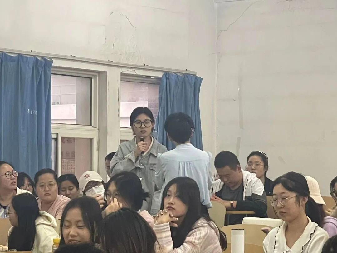 最后是现场提问答疑。 滕秀芹教授结合自身经验,通过深入浅出的方式对同学们提出的针对性问题进行了全方位的答疑解惑,并建议同学们将学习与实践相结合,树立正确职业观,以乐观的心态迎接即将到来的实习生活。