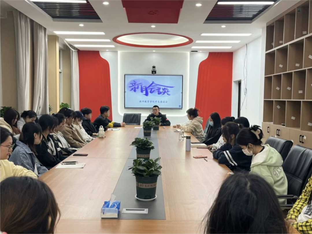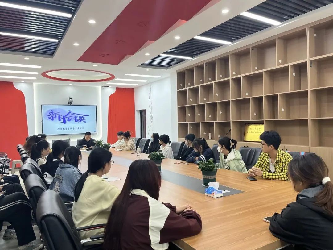 为引导学生遵守宿舍纪律,加强宿舍卫生建设,创建良好宿舍环境,10月23日18:30,我院于二教B106会议室召开学生座谈会,就学生宿舍卫生问题展开讨论。我院团总支书记李炜琛,学生会主席团成员郭妍、姜程晟、张杨以及2022级各班宿舍长代表出席会议。