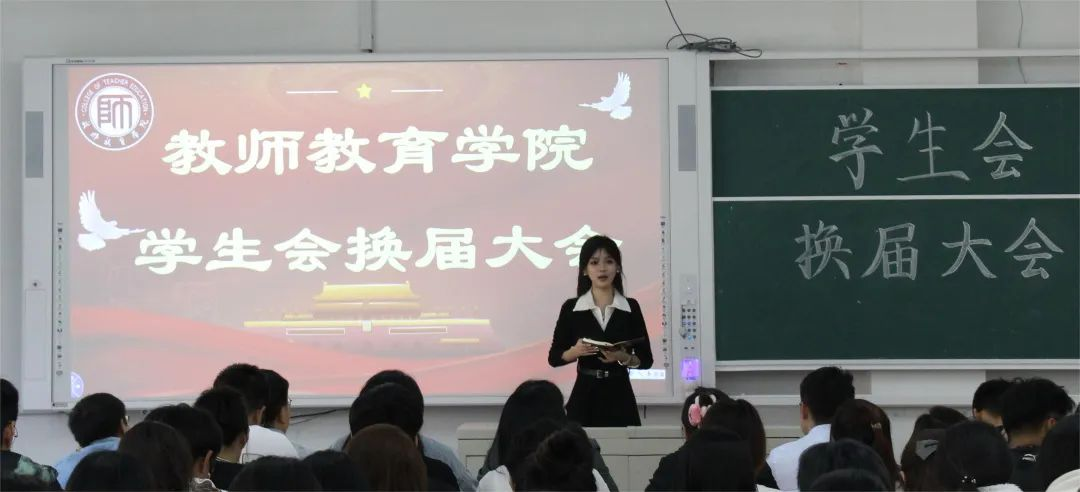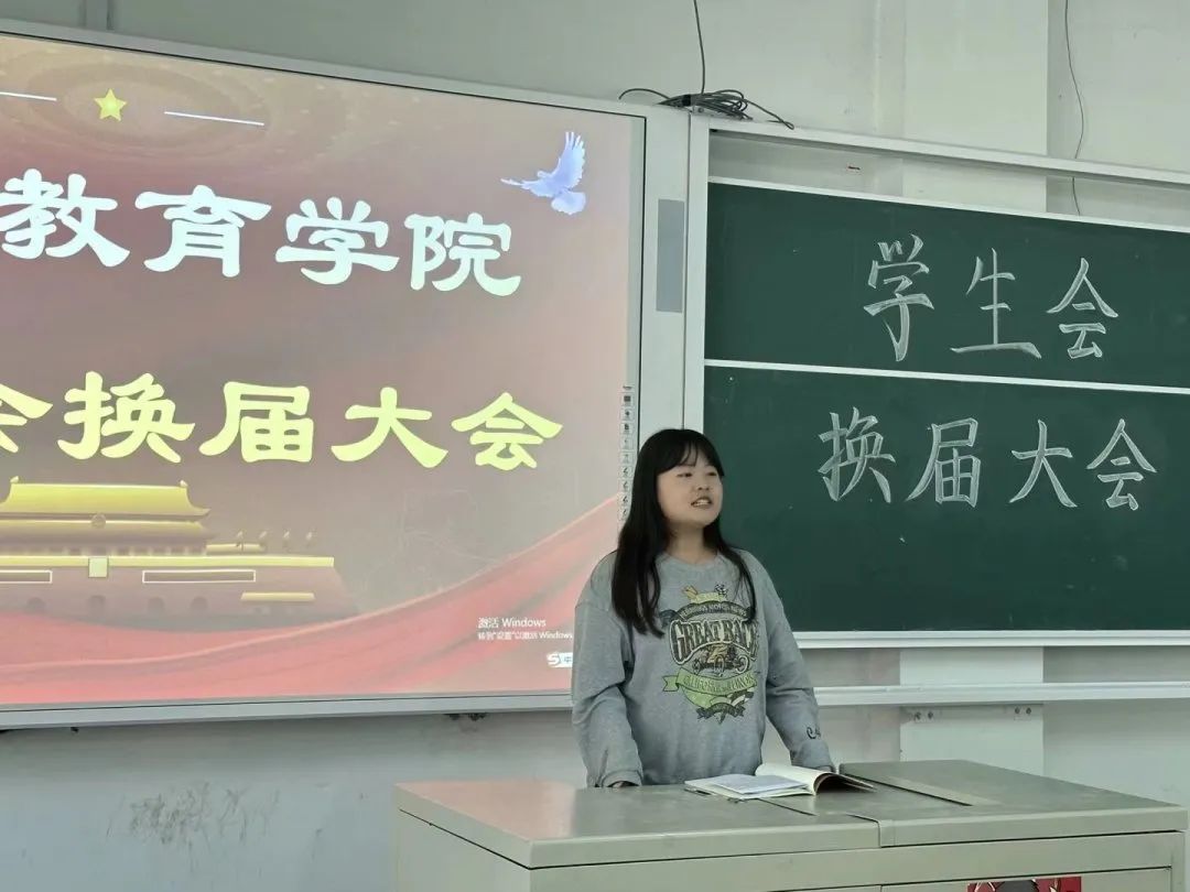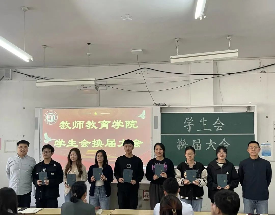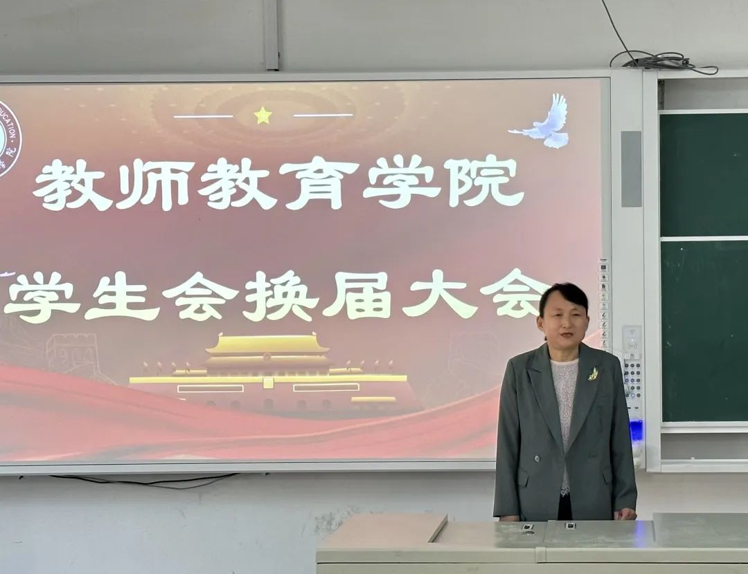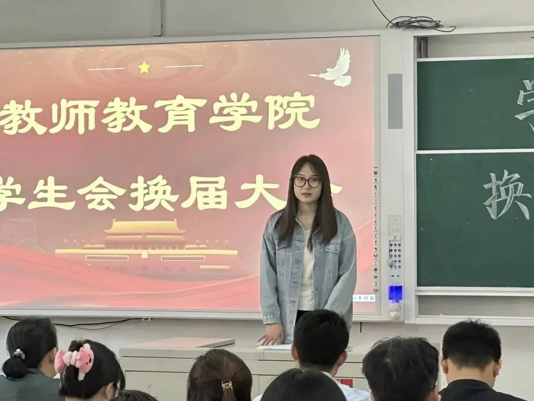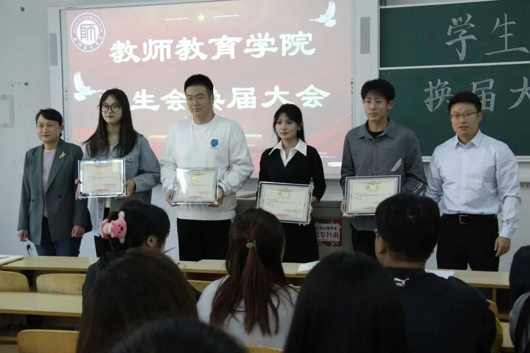 秋风萧瑟天气凉,草木摇落露为霜。10月25日,我院于二教A102教室召开学生会换届大会。教师教育学院党委书记姜东菲、党委副书记栾毅之、团总支书记李炜琛、团总支副书记王亚东以及各年级辅导员老师出席本次大会,2022届学生会主要学生干部和2023届学生会全体成员参加本次大会。本次会议由2022届主席团成员张浩宇主持。