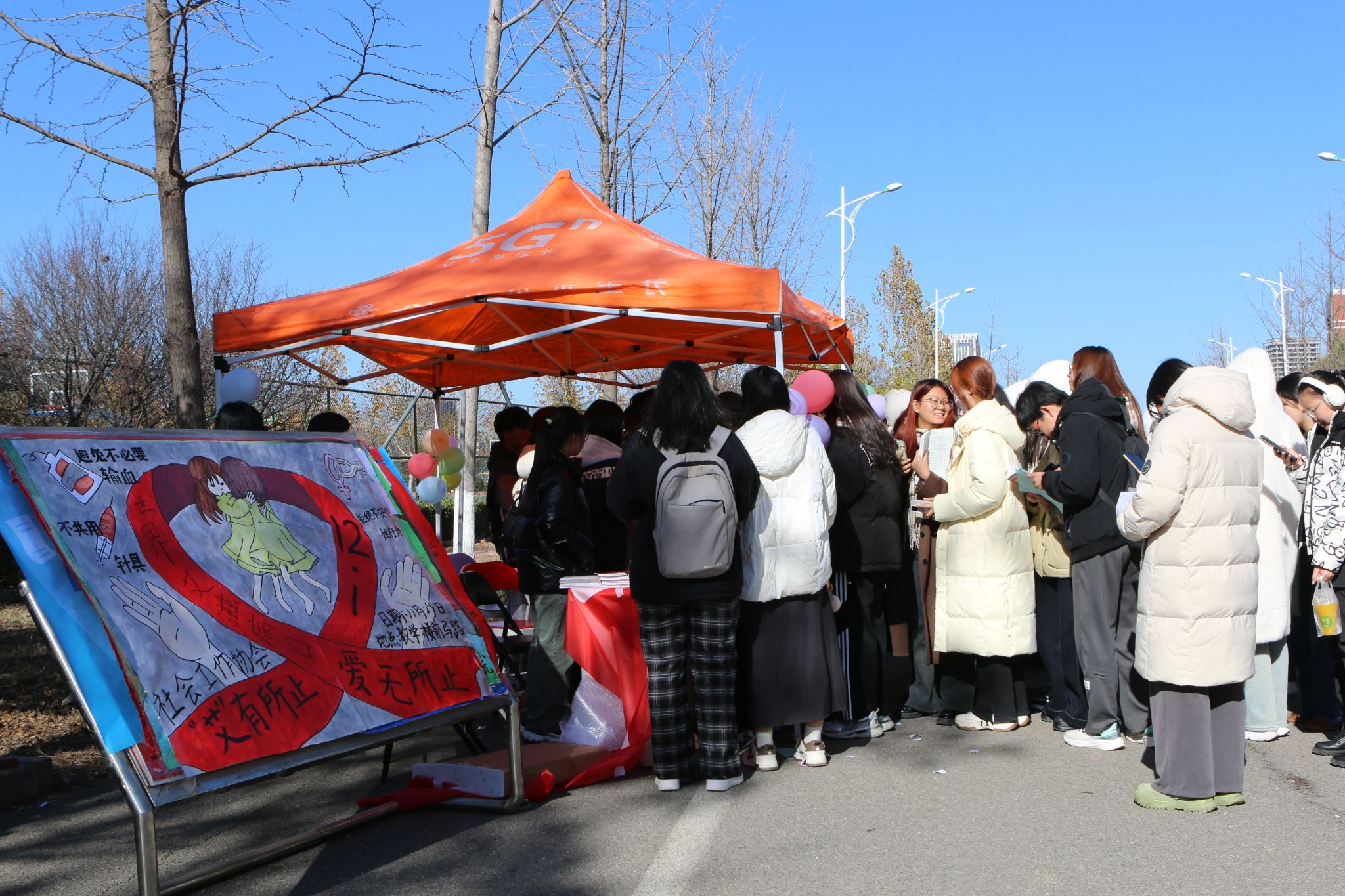 12月1日是第37个“世界艾滋病日”,今年“世界艾滋病日”宣传主题为“社会共治,终结艾滋,共享健康”。为提升青年学生“多病同防”的防护意识,构建安全、健康的校园环境,促进新时代艾滋病防治工作的高质量发展,11月30日,教师教育学院社会工作协会联合章丘区疾控中心等单位举办了以“‘艾’有所止,爱无所止”为主题的世界艾滋病日宣传活动,此次活动也是第九届青春健康校园文化节活动之一。