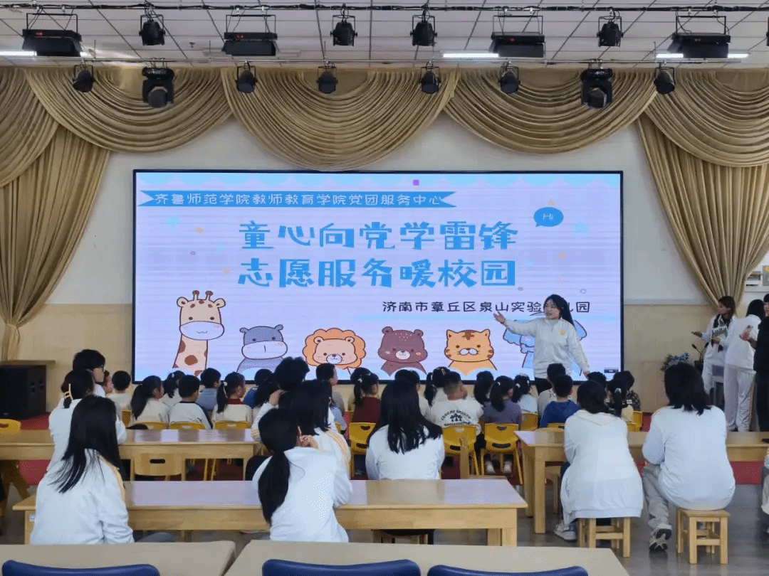 为深入学习贯彻党的二十大精神,认真落实习近平总书记关于弘扬雷锋精神的重要指示,传承红色基因、赓续精神血脉,同时,引领广大青年学子坚定理想信念、厚植爱国情怀,3月19日下午,教师教育学院党团服务中心组织学生党员、团员代表走进章丘区泉山实验幼儿园,开展了以“童心向党学雷锋,志愿服务暖校园”为主题的主题党团日活动,以实际行动践行初心使命,让雷锋精神在新时代绽放新光彩。
