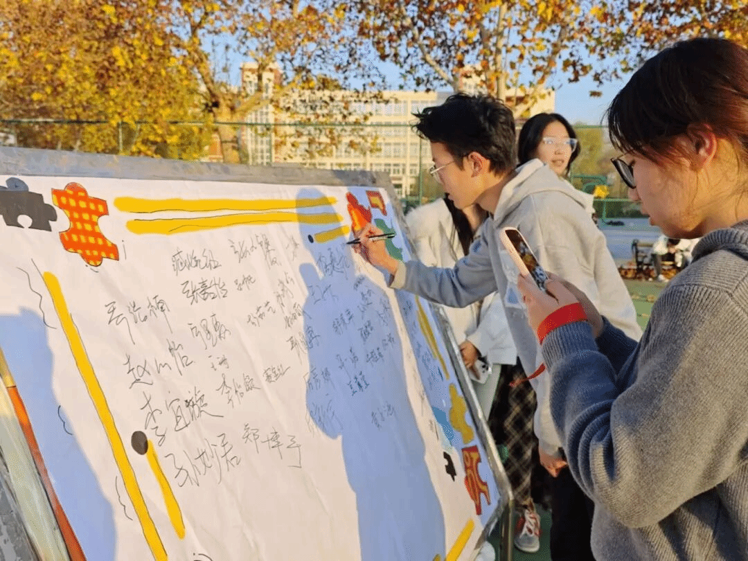 娱乐组以“打卡闯关”形式开展环校跑活动,设置四个趣味打卡点将校园路线化为欢乐赛道,让同学们轻松参与。各打卡点通过签名留痕、套瓶挑战、单眼弹瓶盖、投球互动等趣味游戏,以轻松互动消解奔跑疲惫,让大家在欢乐体验中收获完成全程的成就感。