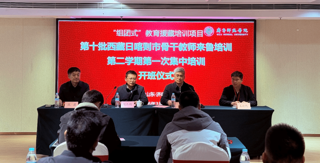 开班仪式上,张兆明代表齐鲁师范学院向日喀则教育同仁致以热烈欢迎。他指出,教育援藏是党中央战略部署与学校政治责任,学校深度参与“组团式”援藏,已承接十批骨干教师培训并与日喀则建立深厚情谊,本学期将在上学期20名教育管理干部培训基础上,进一步聚焦核心需求、深化帮扶实效。张兆明重点介绍了学校“一个中心、两个支持”的社会服务布局(以山东省师训干训中心为核心,依托山东省教师教育网平台及教师教育学院等学院,构建全方位服务基础教育体系),并强调本次培训是落实强师计划的具体行动,寄语学员珍惜机会、严守纪律,融合山东经验与西藏实际,学有所获,成为鲁藏教育交流使者,共促民族团结与教育共进。