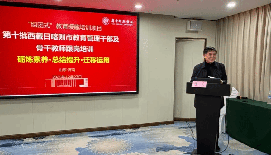 为系统总结跟岗研修阶段学习成果,推动培训成效向实践转化,第十批日喀则市骨干教师来鲁培训跟岗环节总结交流在济南举行。来自日喀则市的骨干教师围绕“砺炼素养·总结提升·迁移运用”主题,立足自身研修经历,从学校文化浸润、教育理念更新、课堂观摩与实践反思等多个维度,对跟岗研修期间的学习收获进行了系统梳理与深入总结。